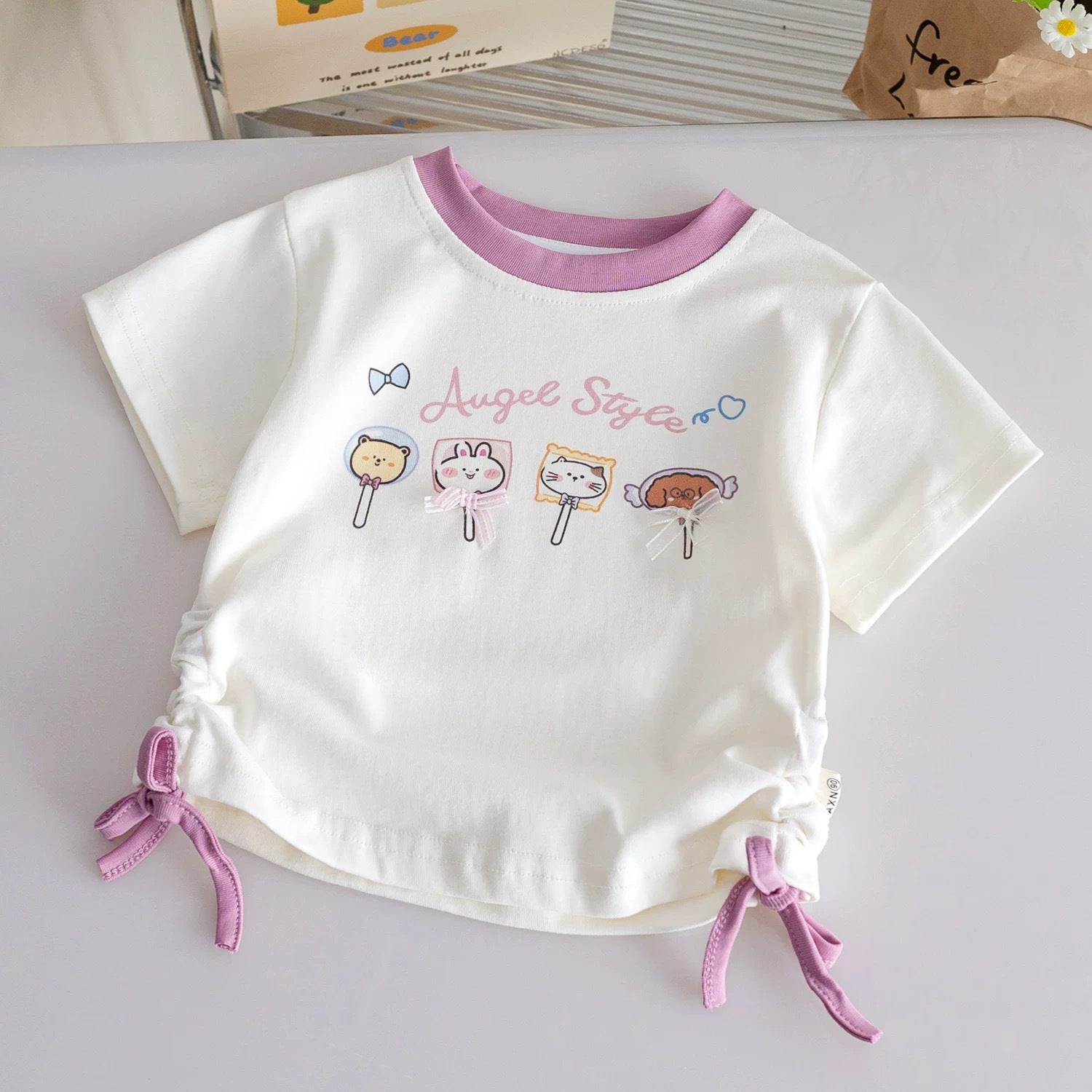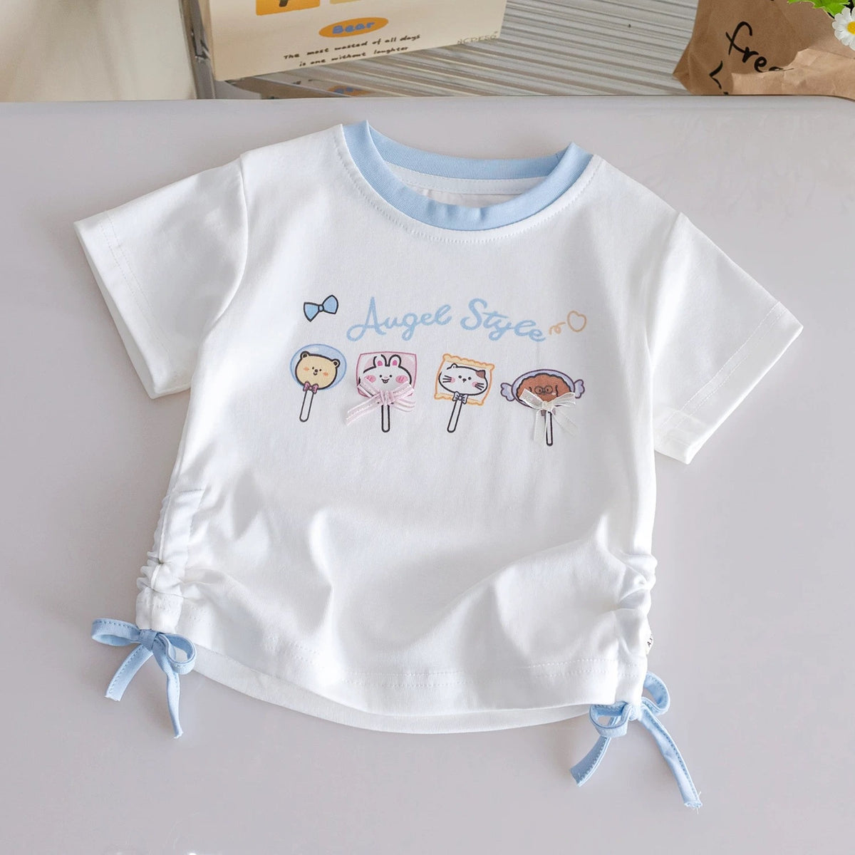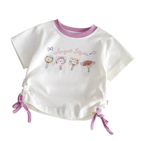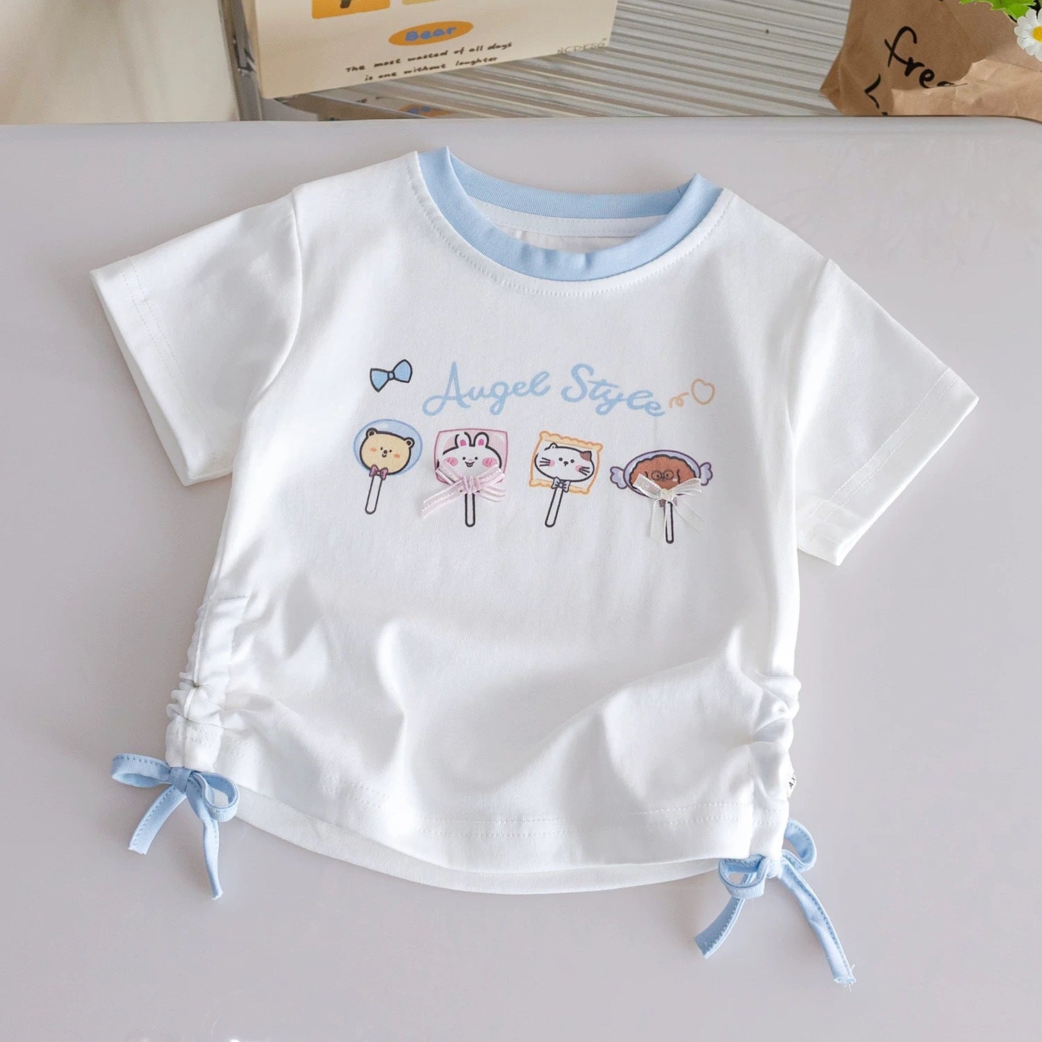Add this cartoon drawstring cotton T-shirt to her summer favorites 💖 – the perfect mix of playful design and breezy comfort.