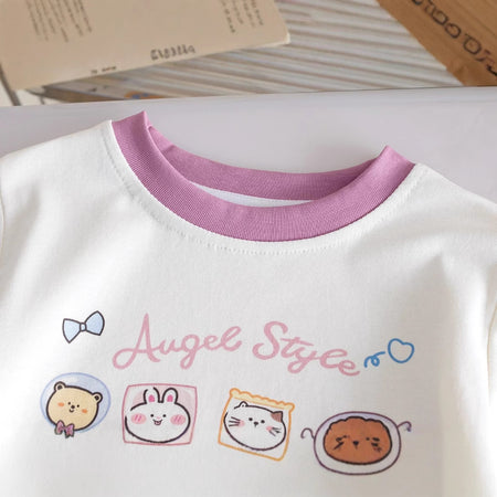 Girls’ Cotton Cartoon T-Shirt – Cute Drawstring Design
