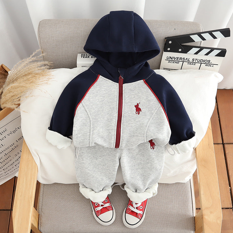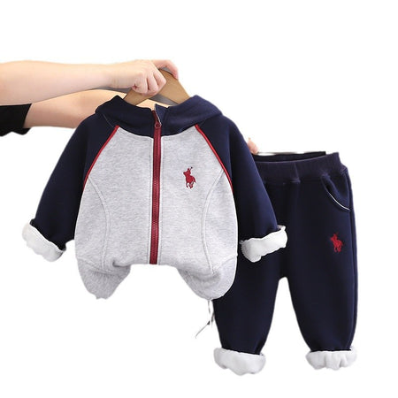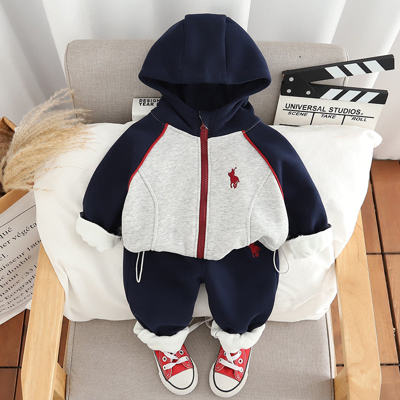 2024 Boys’ Fleece-Lined Hooded Two-Piece Set