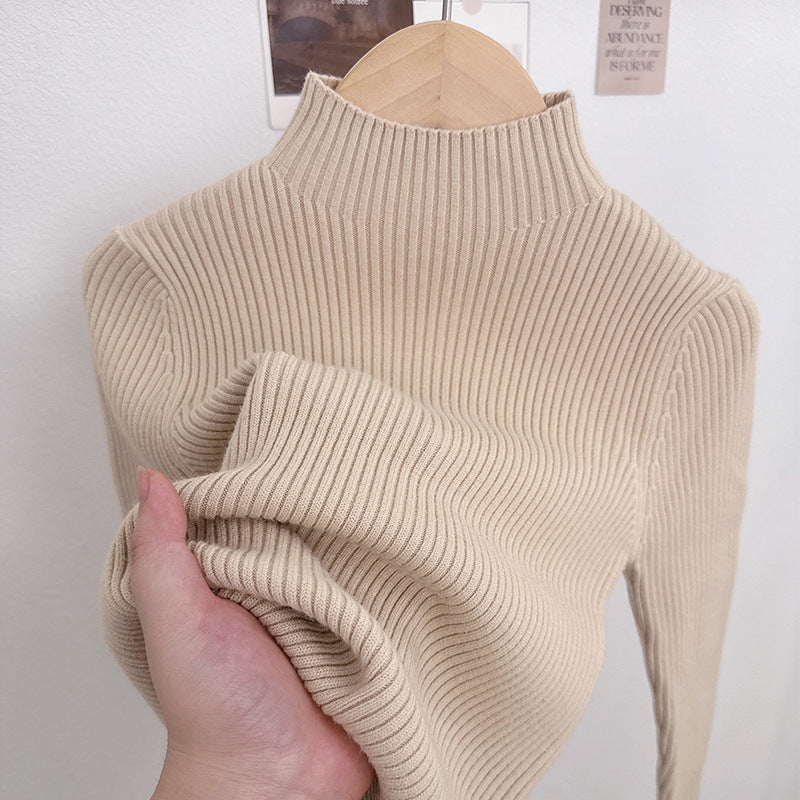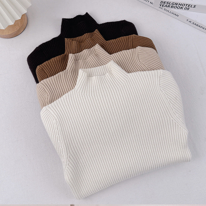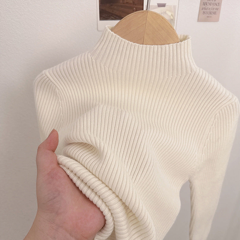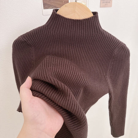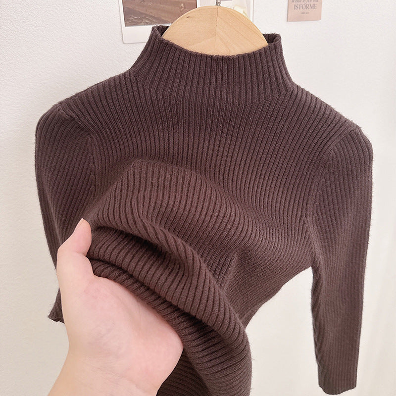 Korean-Style Half Turtleneck Kids’ Knitted Base Shirt