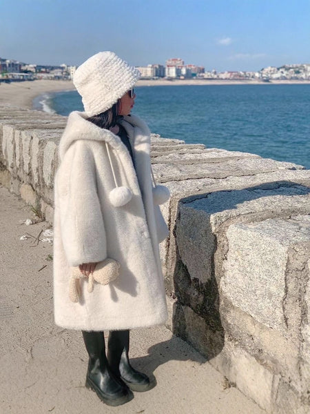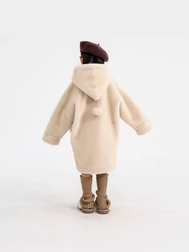 This girls' fur outwear emphasizes a clean and trendy silhouette. The wizard hat element adds character, while the fur integrated build maintains comfort throughout autumn and winter ❄️.