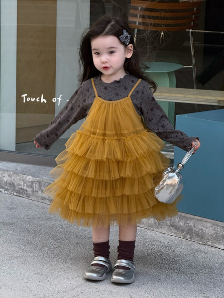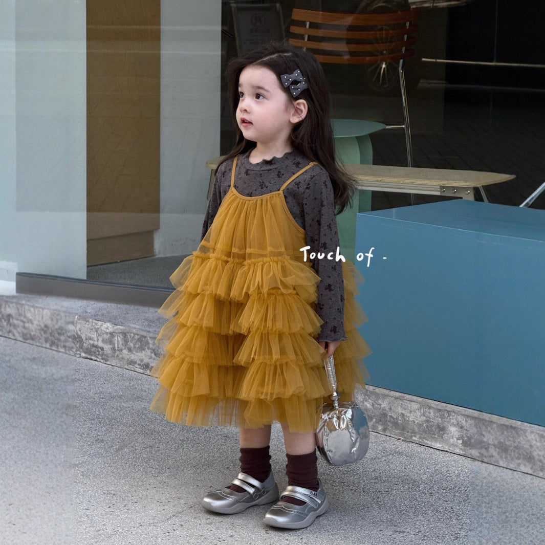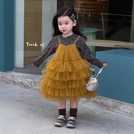 🍂 Welcome autumn 2025 with our Korean Style Girls’ Princess Dress, designed to bring charm and warmth to your little girl’s wardrobe 👧🍁. This elegant set features a strappy layered cake skirt paired with a delicate floral undershirt, perfect for Nepal’s cool autumn days and festive occasions 🎉🌸.
