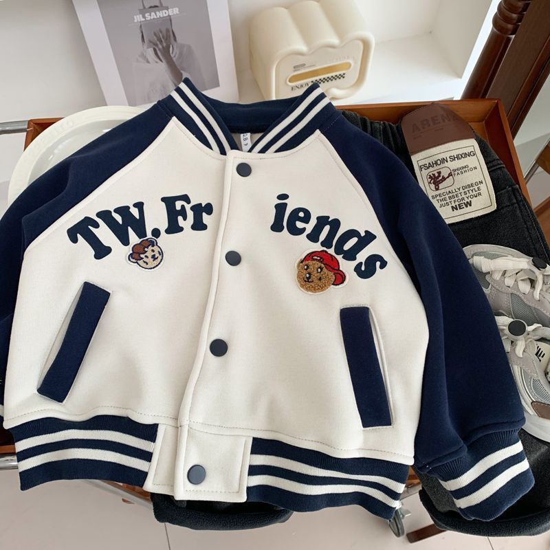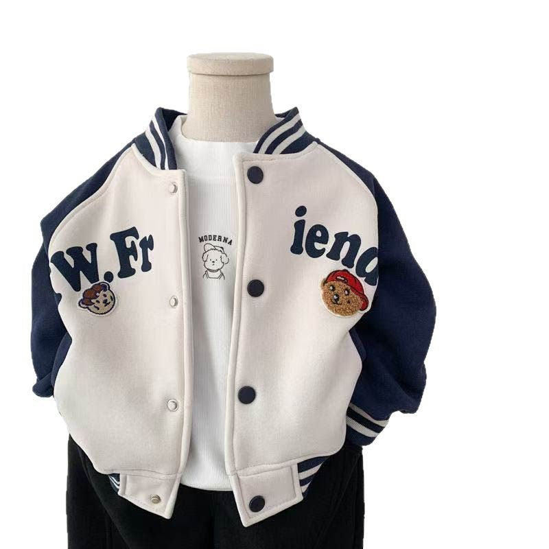 2025 Kids’ Bear Letter Jacket Boys Trendy Spring & Autumn Coat
