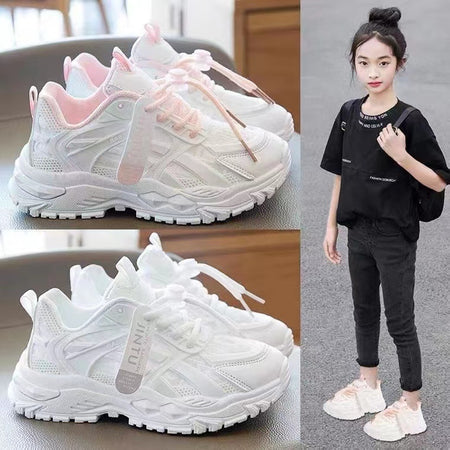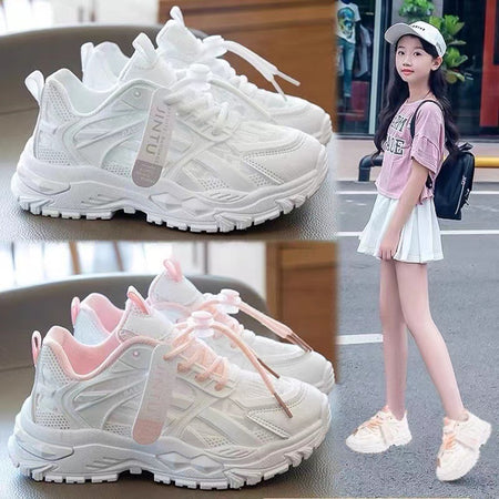 👟 Step into comfort and style with the 2025 Breathable Mesh Torre Sneakers — designed for both boys and girls, perfect for primary school students across Nepal 🧒👧. These all-match white casual shoes feature a lightweight mesh upper that allows excellent airflow, keeping little feet fresh and cool during active school days and outdoor play 🌬️🏫.