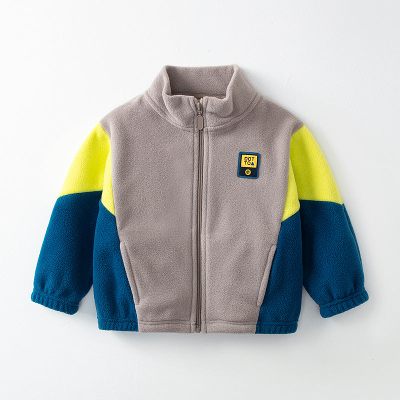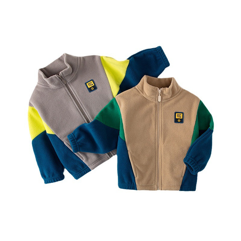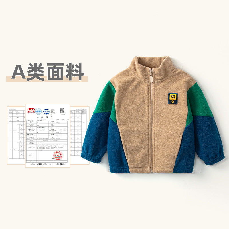 2025 Kids’ Polar Fleece Jacket Boys Color Block Warm Coat