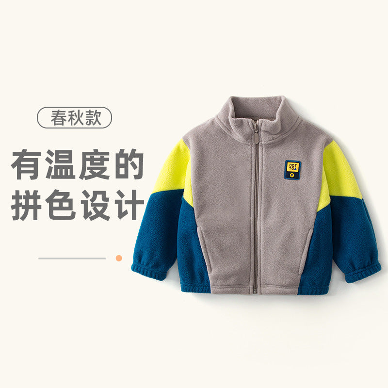 Keep your little ones cozy and stylish with the 2025 children’s polar fleece jacket! 🌟 Designed for boys and babies, this spring and autumn jacket features a stand collar, loose fit, and trendy color block design—perfect for school, outdoor play, and everyday adventures.