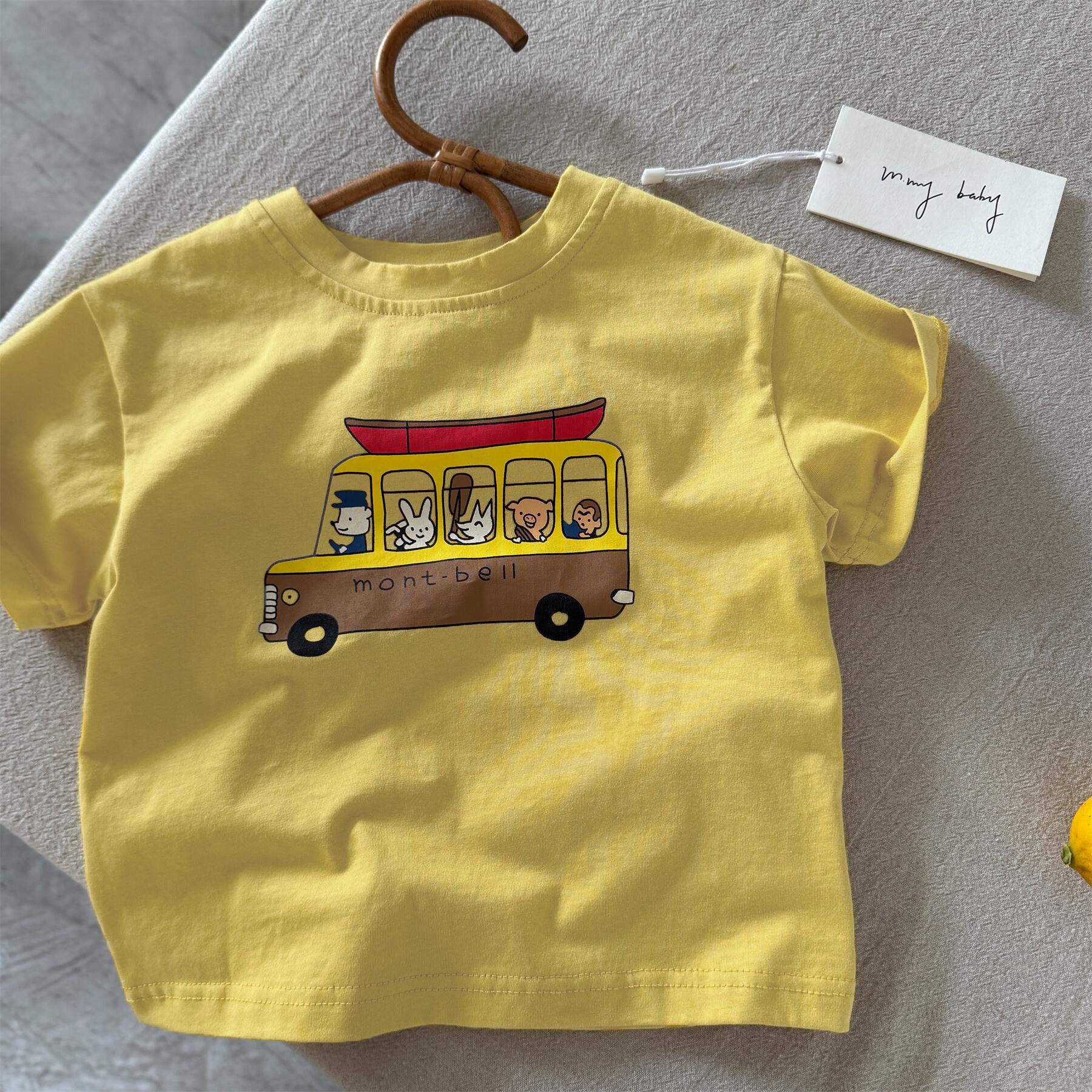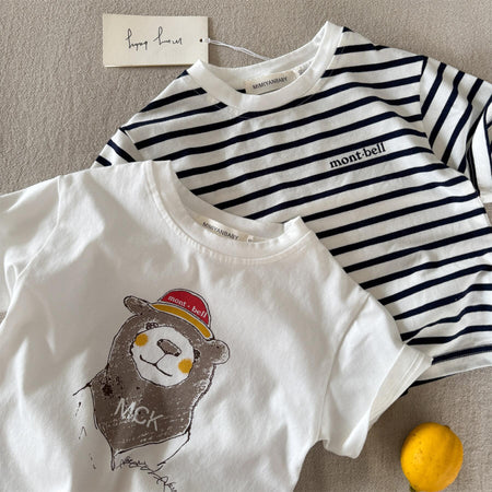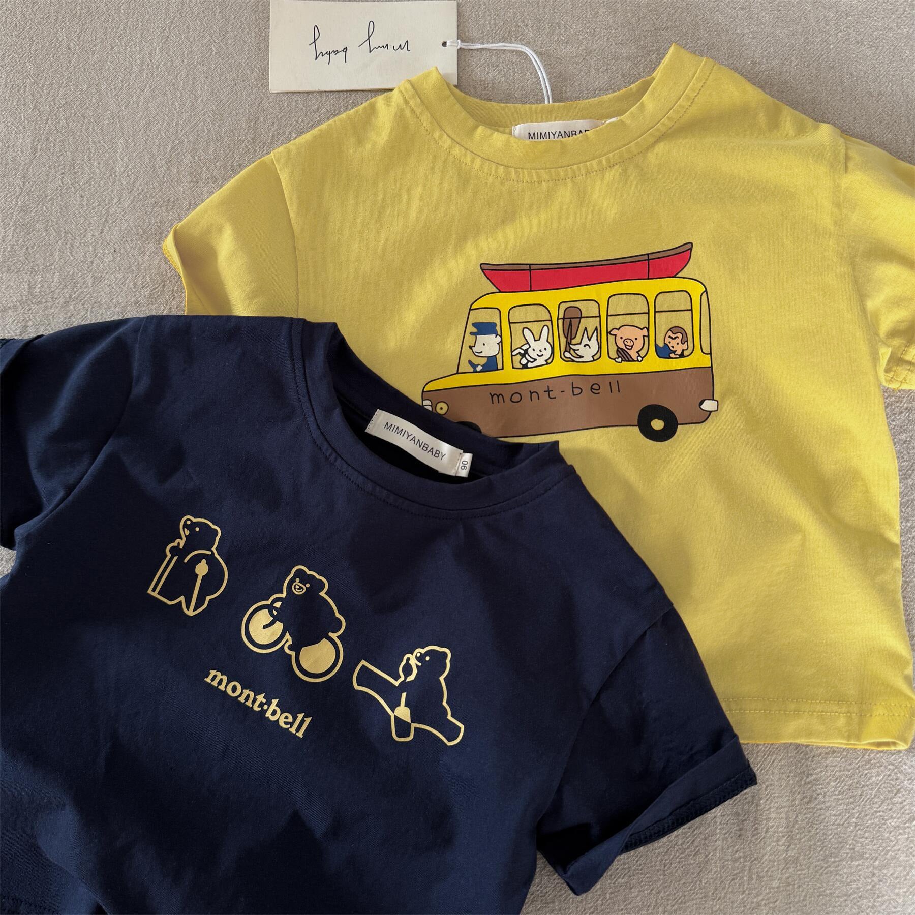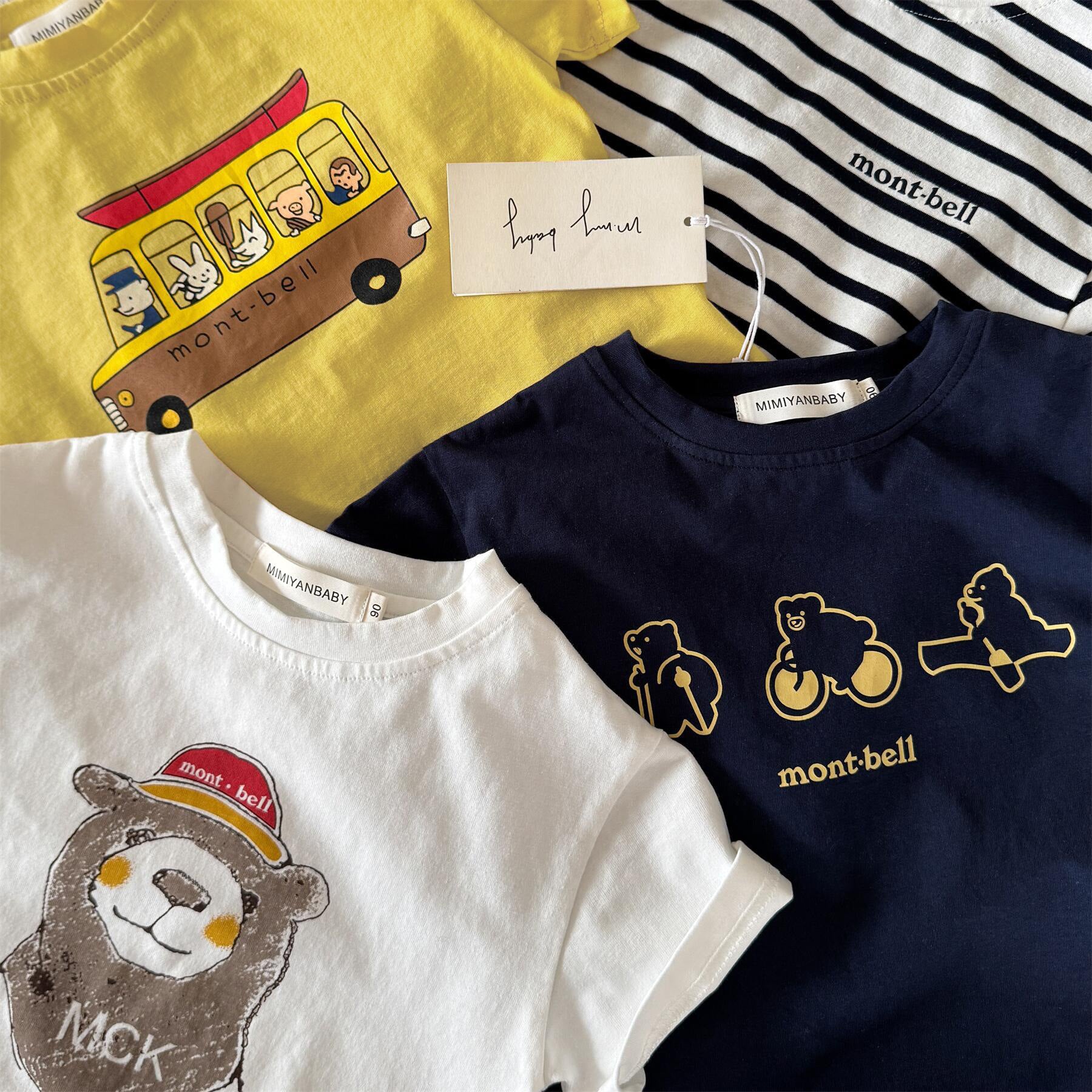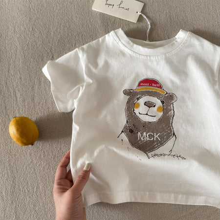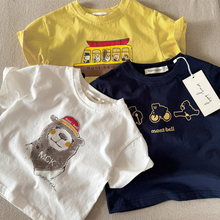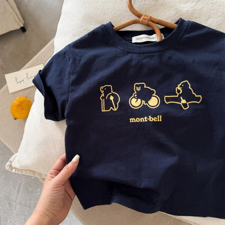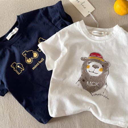 2025 Kids Summer Cotton T-Shirt Japanese Cartoon Bear Design