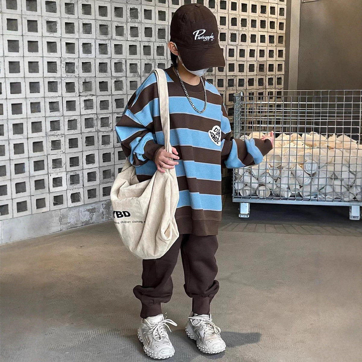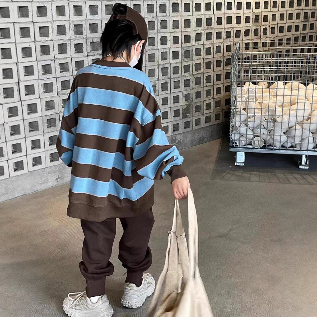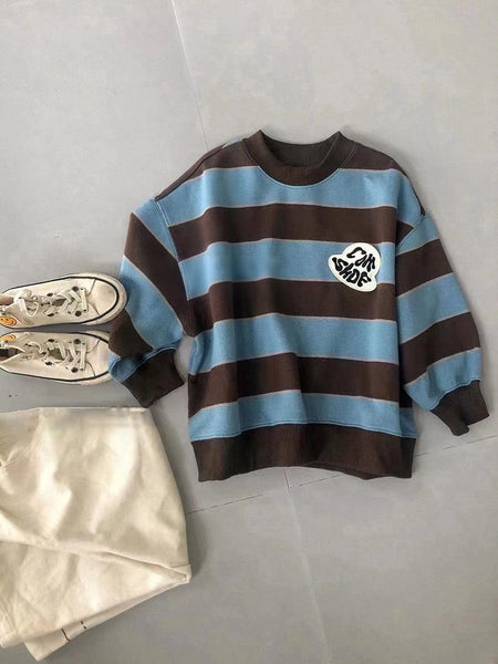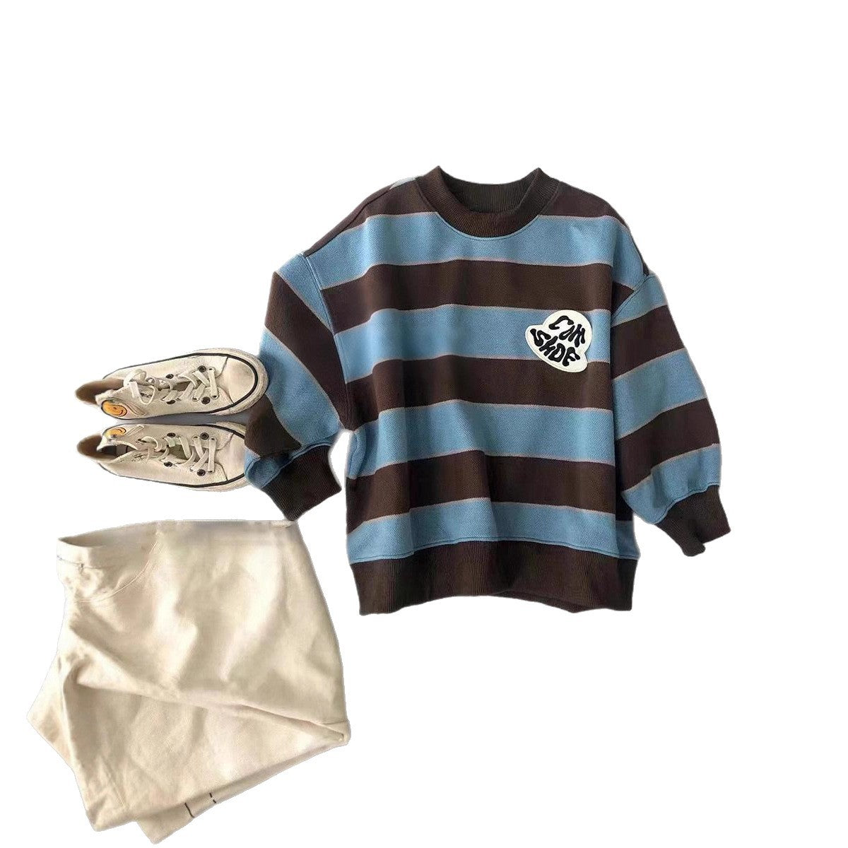Kids’ Striped Contrast Sweatshirt – Autumn Loose Fit