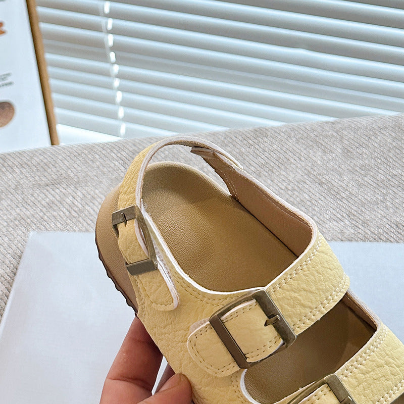 Crafted with lightweight, durable cork and frosted materials, these sandals are gentle on little feet while providing support for outdoor adventures. The non-slip sole ensures safety on playgrounds, beaches, or family outings, making them ideal for active kids. 🌸 With a timeless design, they are versatile enough to pair with dresses, shorts, or casual summer outfits.