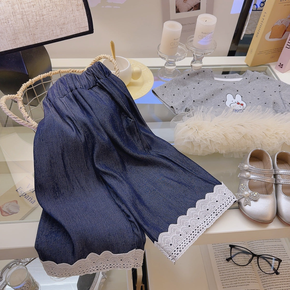 Keep your little one stylish and cool this summer! ☀️ The 2025 Girls’ Summer Fashionable Thin Lace Jeans combine trendy design, comfort, and playful elegance. Featuring delicate lace details and a cropped wide-leg cut, these jeans are perfect for middle and large children who love fashionable, casual wear.