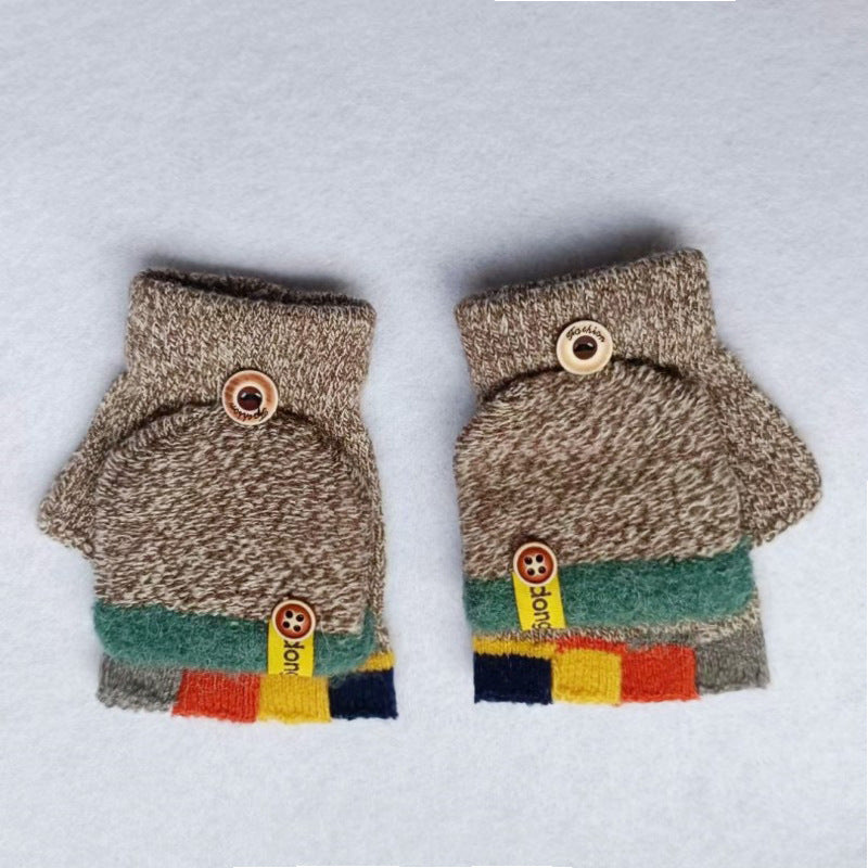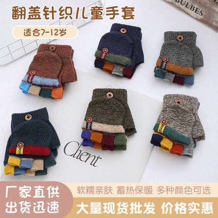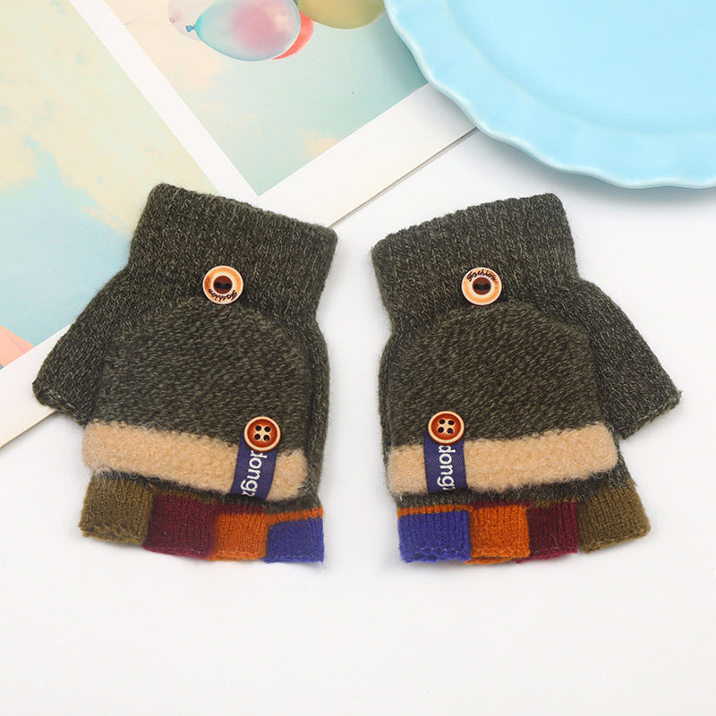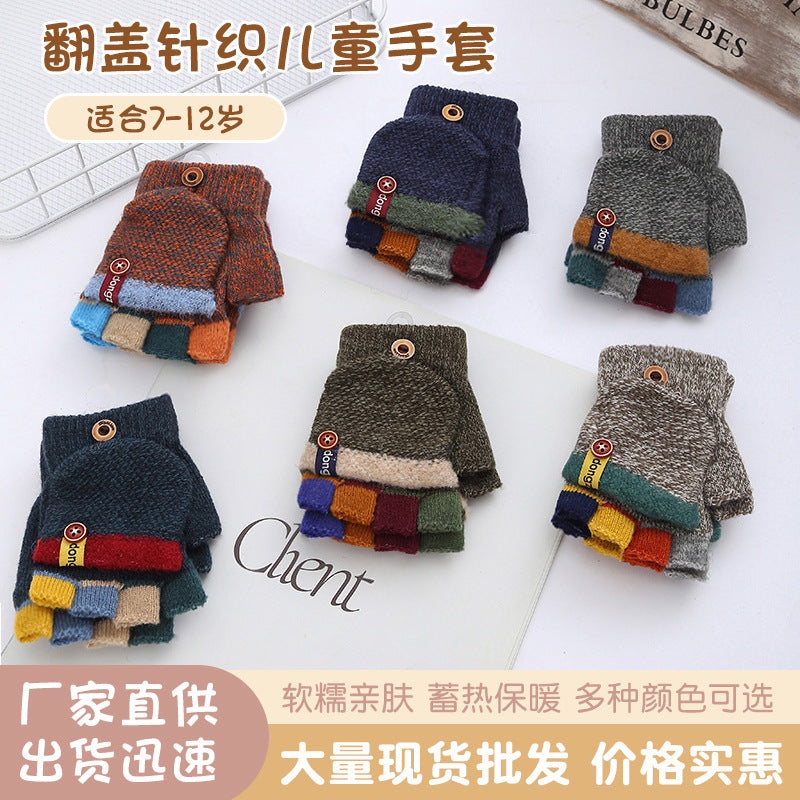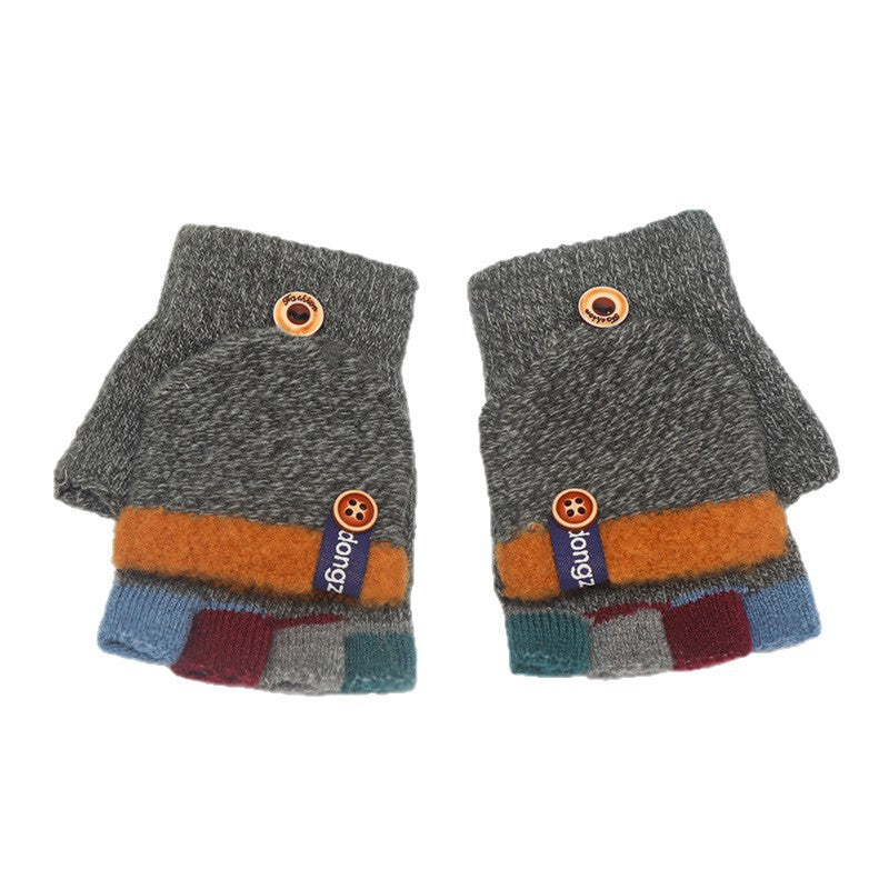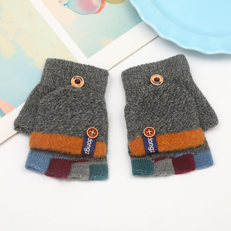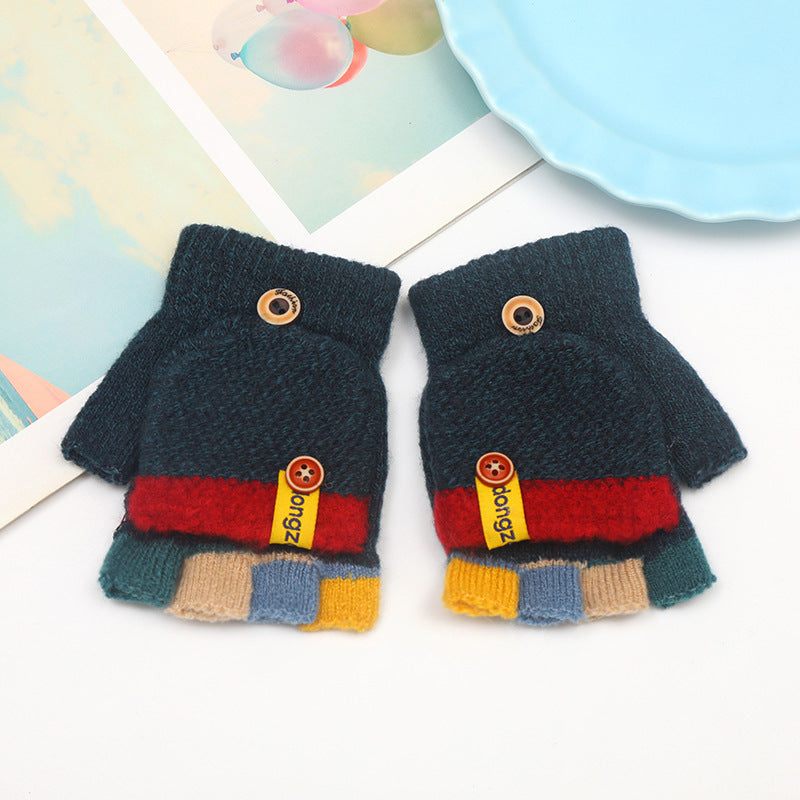 Kids’ Striped Winter Gloves – Warm Half-Finger Design
