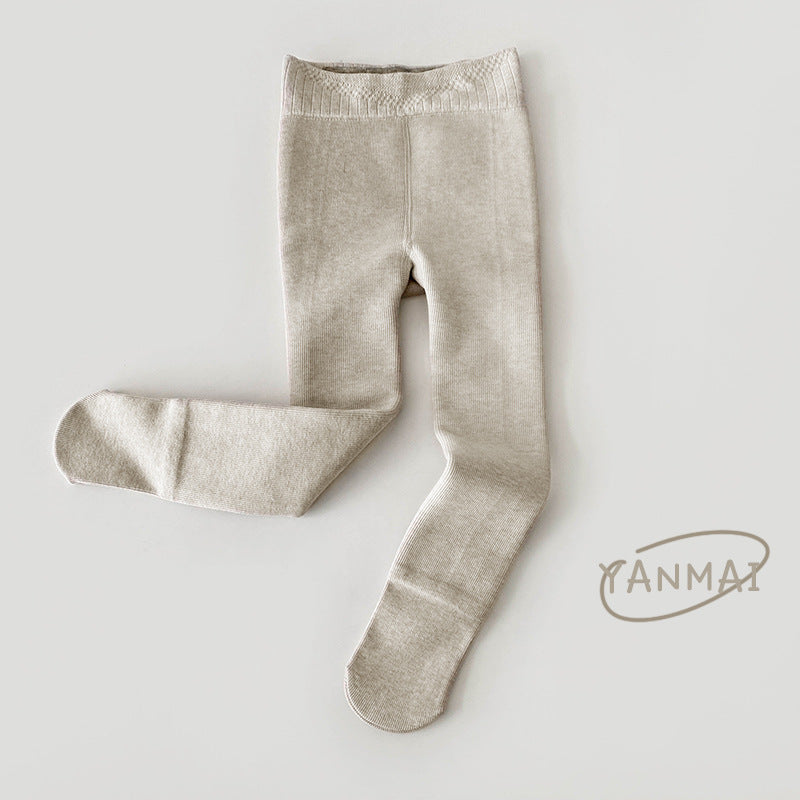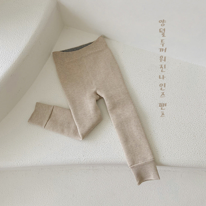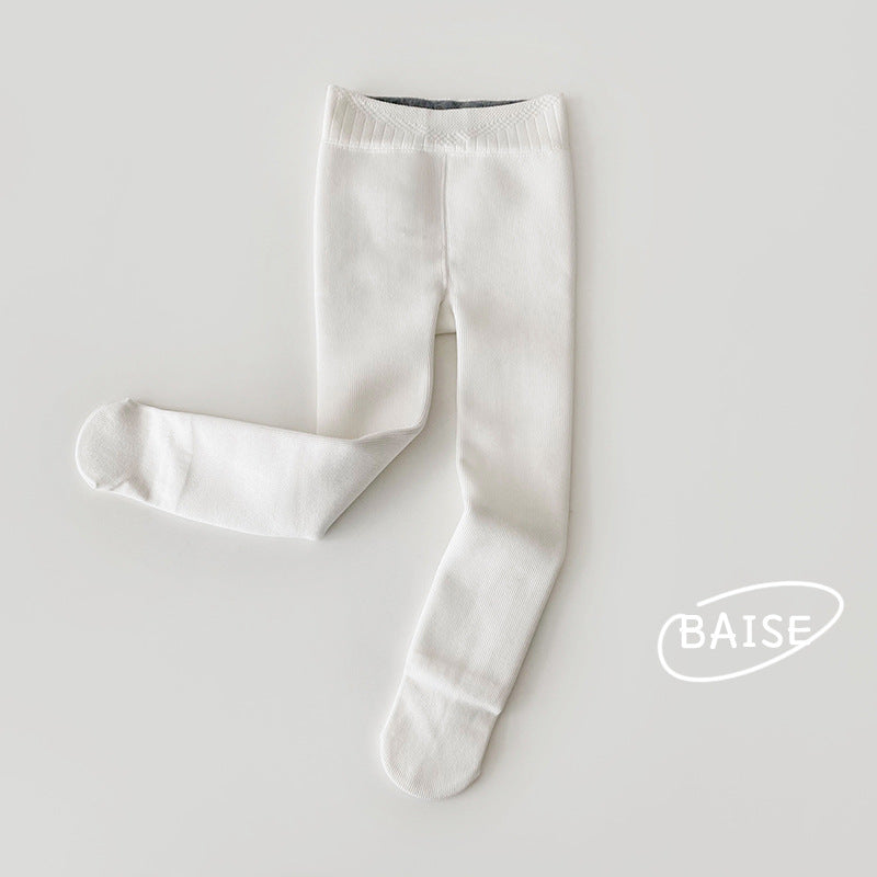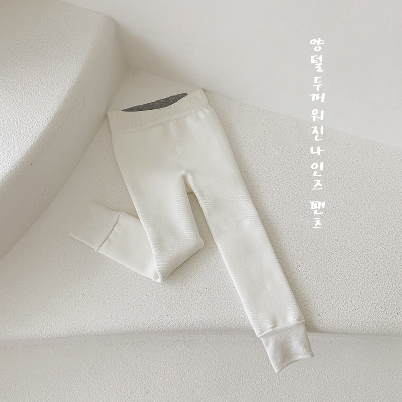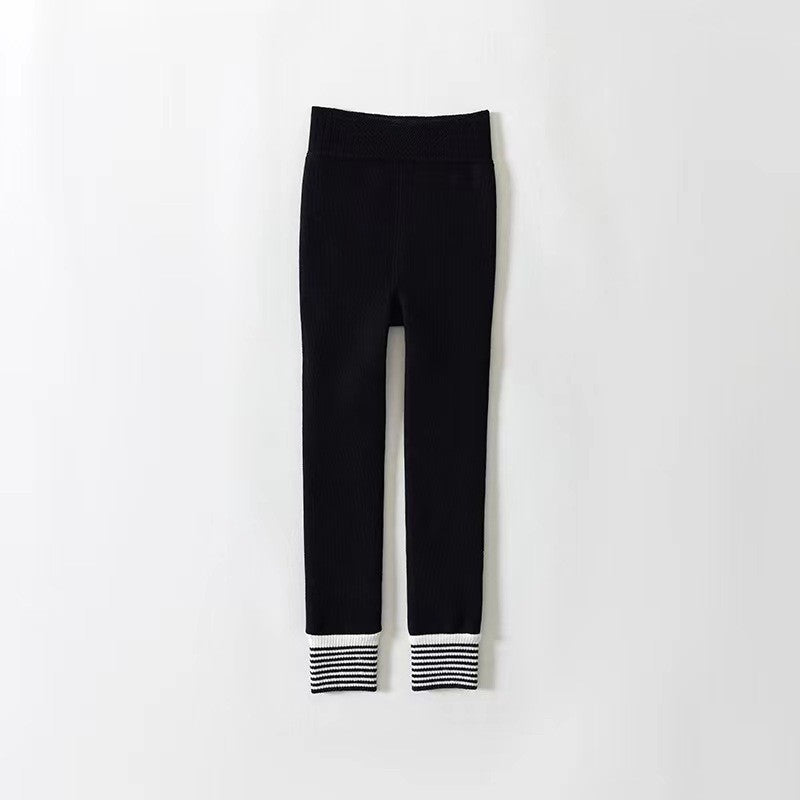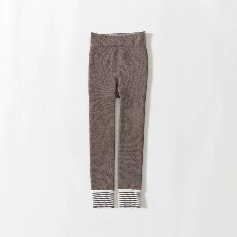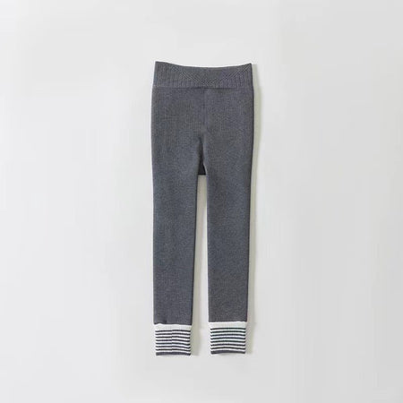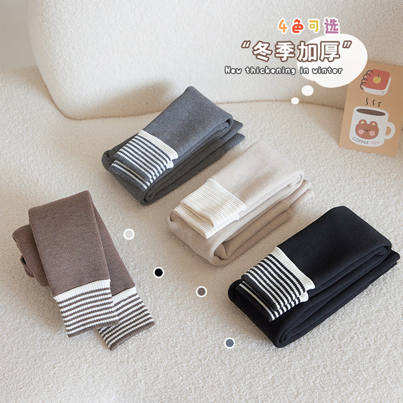 Girls’ Velvet Warm Leggings – Striped Waist Slim Fit
