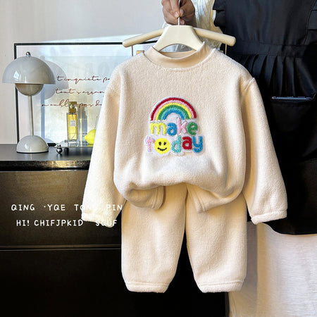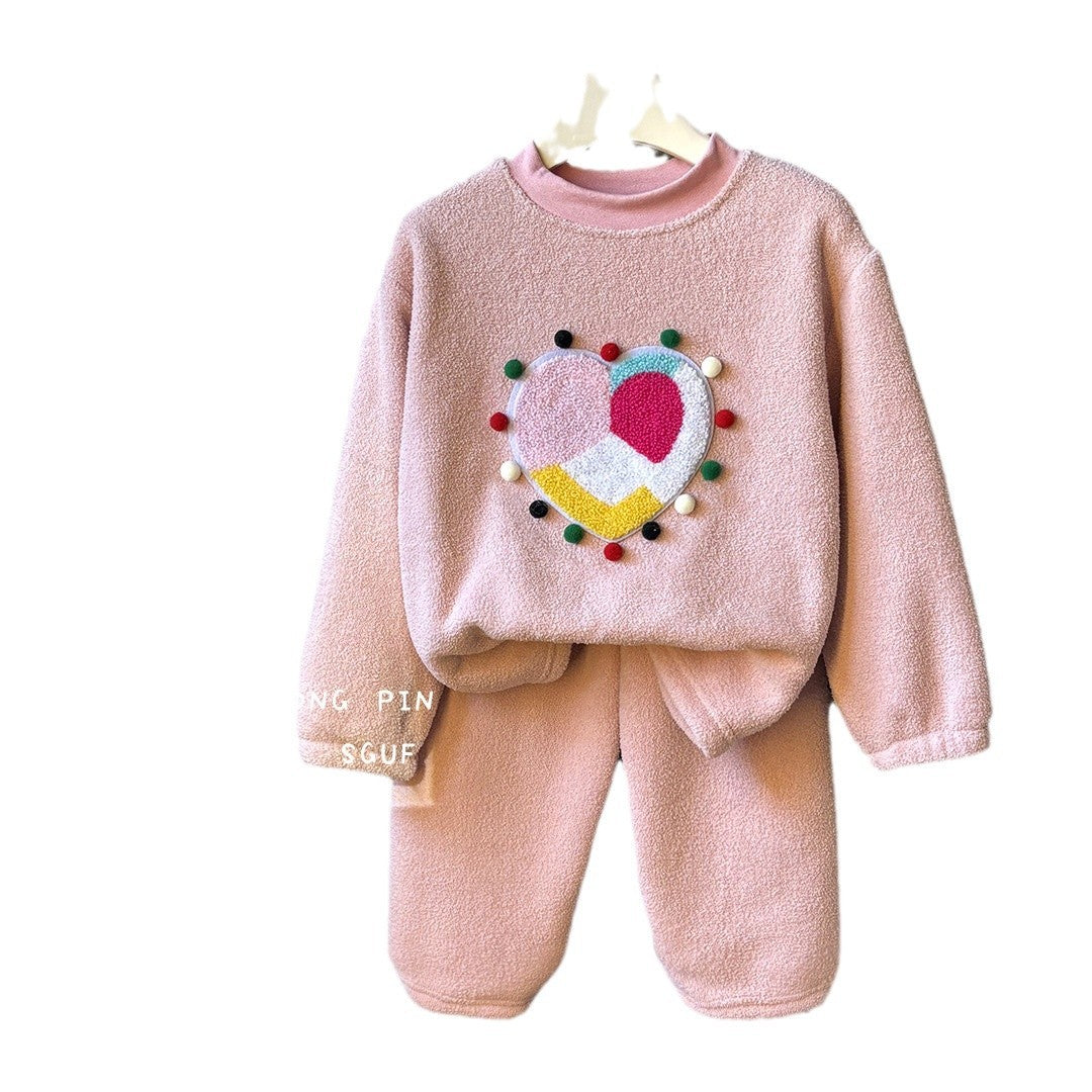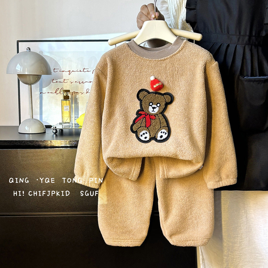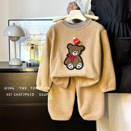 Velvet Thickened Kids Pajama Set Winter Warm Clothes