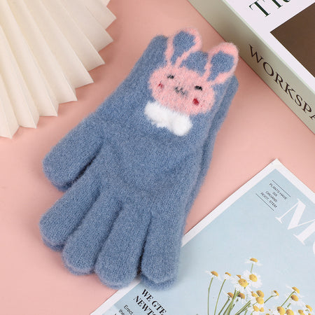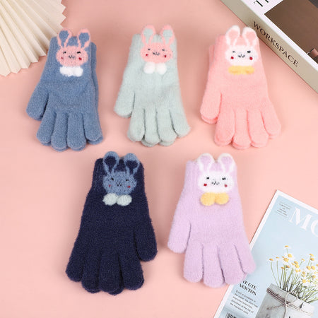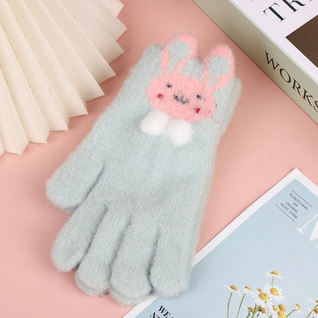 Girls’ Autumn & Winter Fleece-Lined Rabbit Gloves