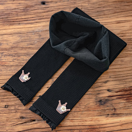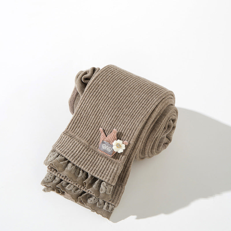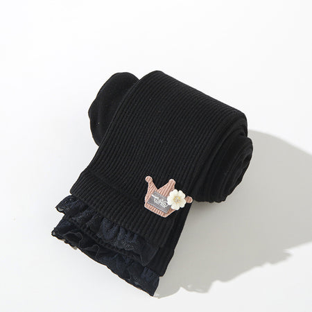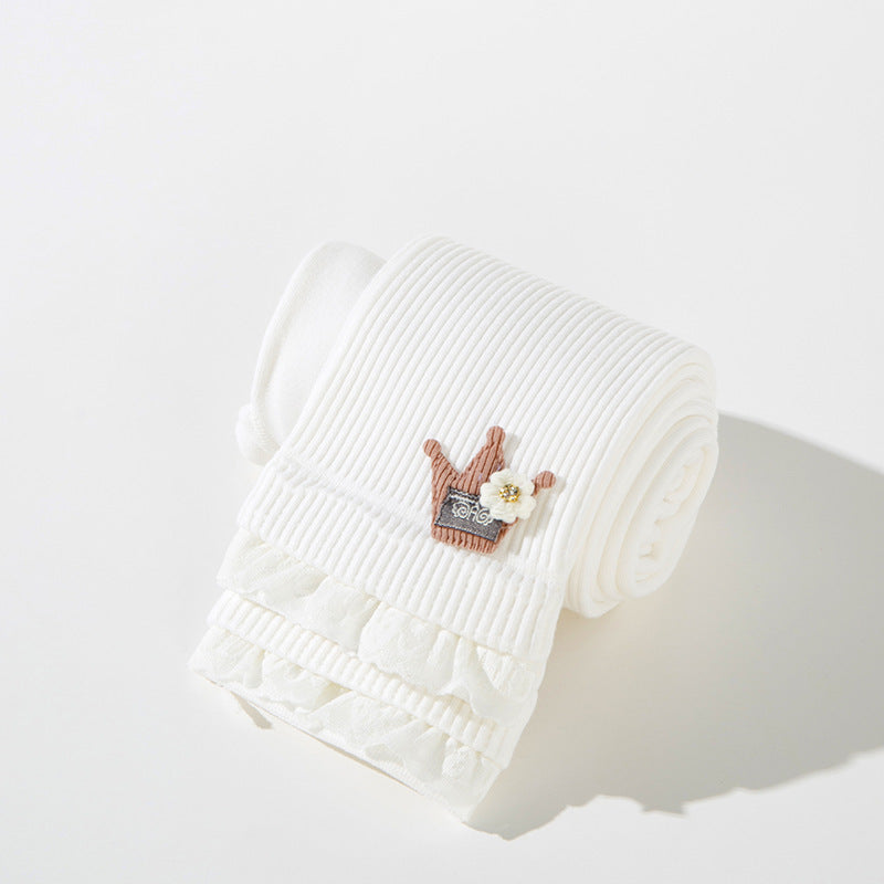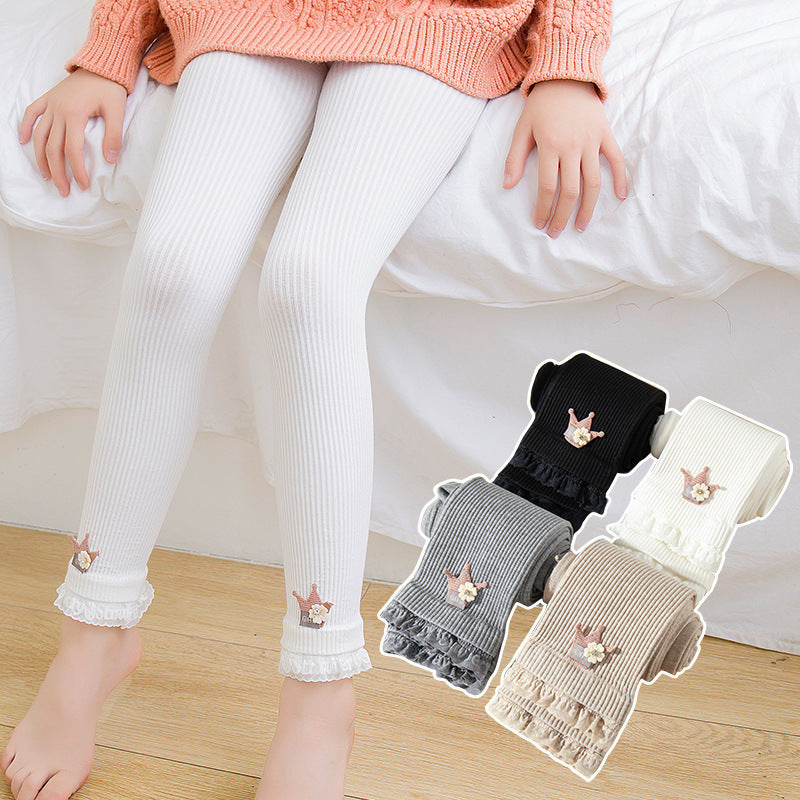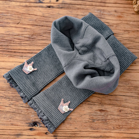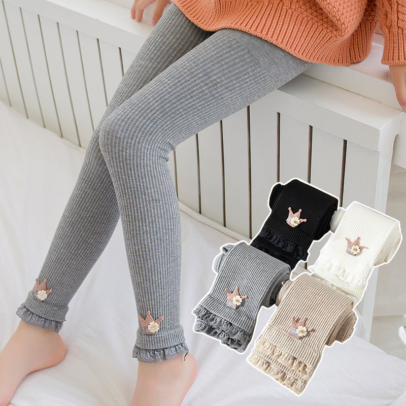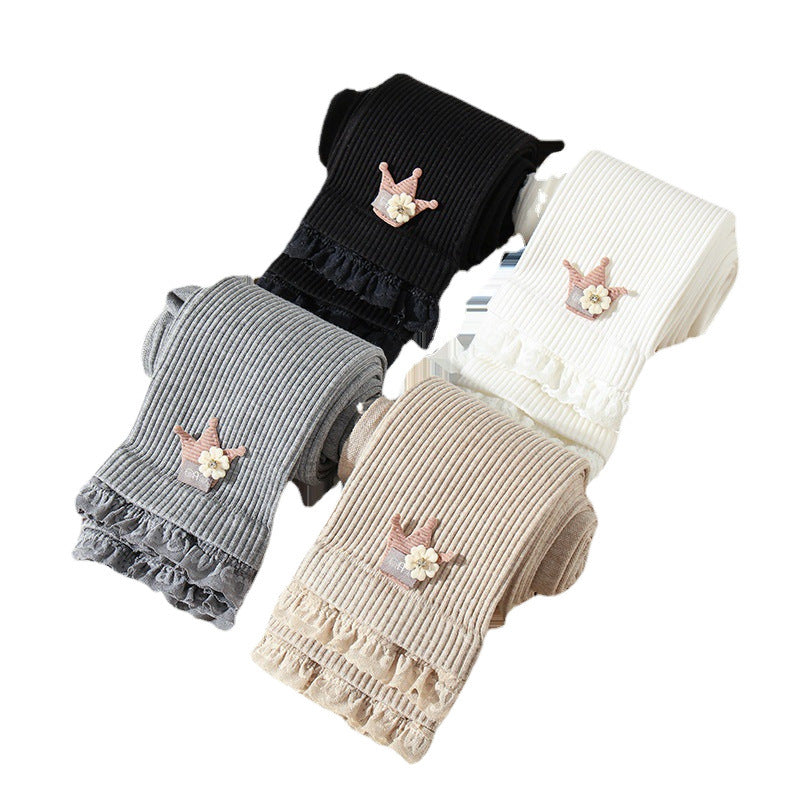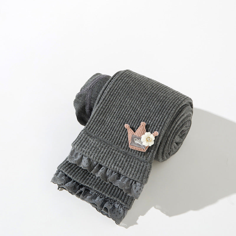 Girls’ Autumn Cotton Leggings – Soft Crown Design Pants