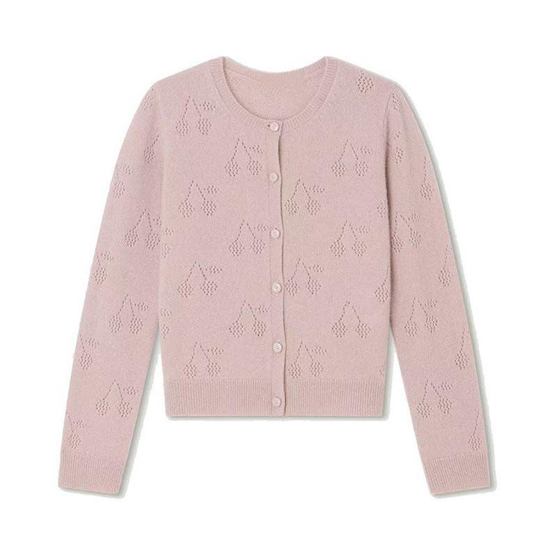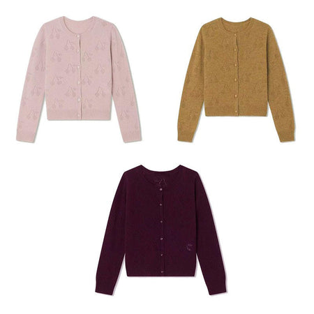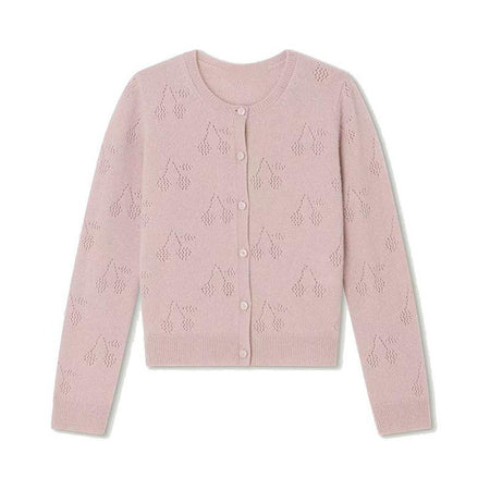 Girls’ Knitted Cherry Jacquard Cardigan Sweater