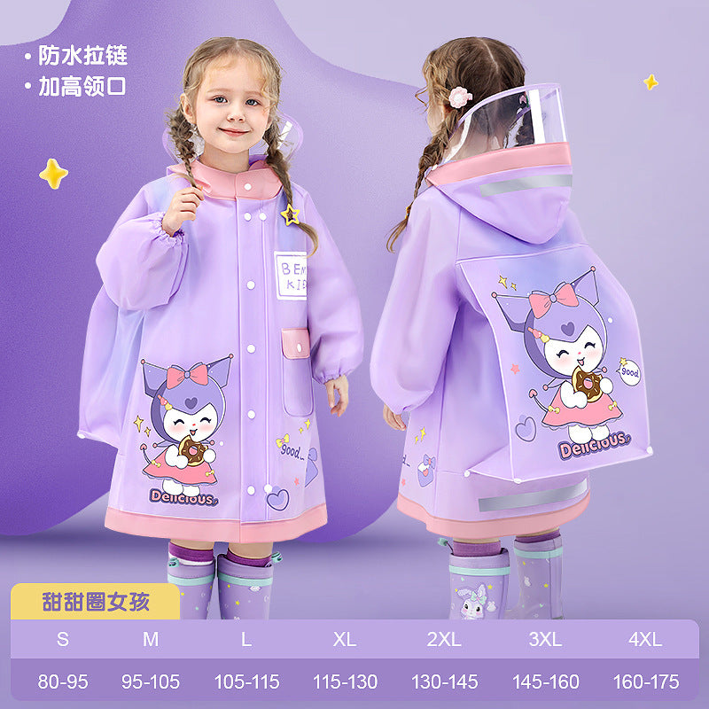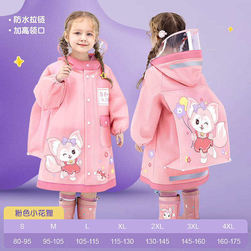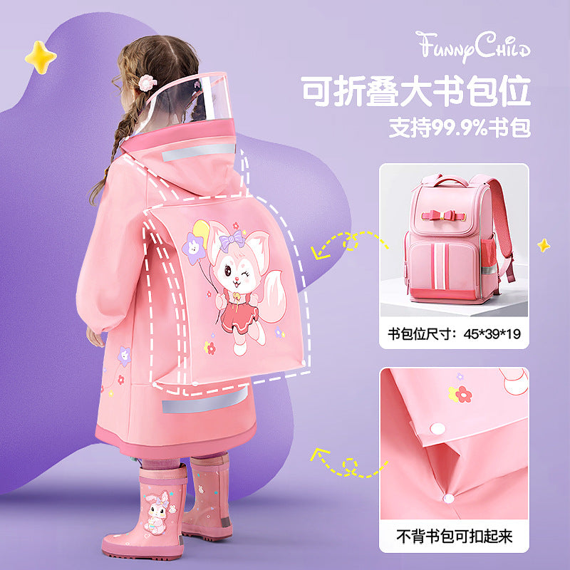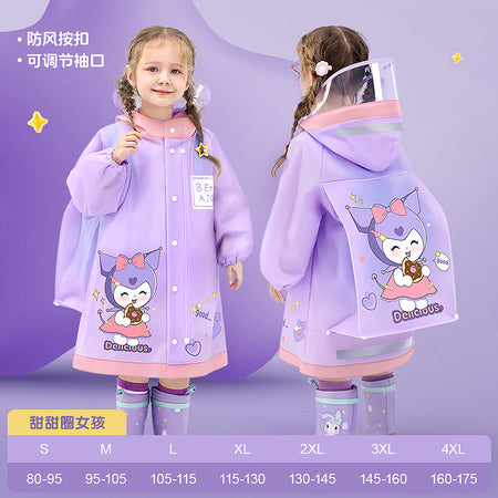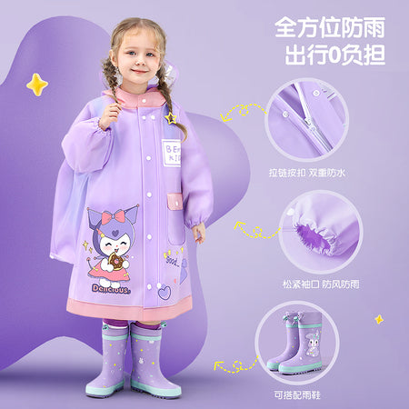 Girls’ EVA Raincoat with Schoolbag Space – Poncho Style