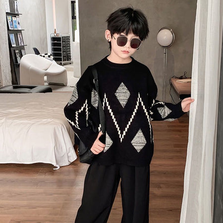 Made from soft, breathable knit fabric, it provides cozy warmth without feeling heavy. The classic round-neck design makes it easy to layer over shirts or t-shirts, while the diamond-patterned texture adds a trendy, eye-catching detail that elevates any outfit.