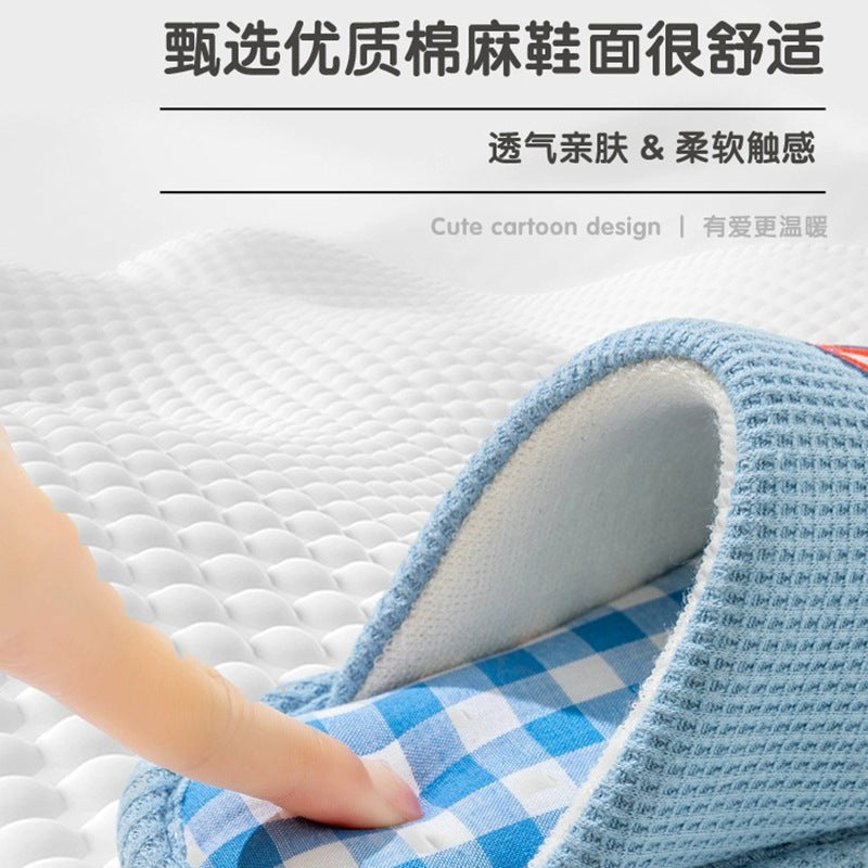 Ideal for indoor play, morning routines, or quiet home activities, these slippers keep feet comfortable without slipping or sliding. The breathable linen material prevents overheating, while the soft cotton interior absorbs moisture, keeping feet dry and fresh. Their quiet soles make them perfect for households where noise is a concern, and the charming cartoon designs make them a favorite for children.