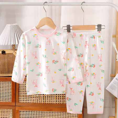 👶 Keep your little ones comfortable and stylish during summer with our Children’s Summer Long Sleeve Boneless Home Clothes Pajama Set. Perfect for boys 👦 and girls 👧, this lightweight set is ideal for air-conditioned rooms ❄️ or warm summer nights 🌞, providing soft, breathable comfort all day and night.