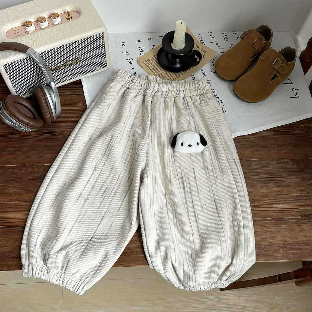 The corduroy fabric gives warmth and texture, while the playful doll design element adds a touch of creativity kids will love. These pants are lightweight yet warm, making them suitable for early autumn and cool weather. Pair them with sweaters, shirts, or hoodies for a versatile everyday outfit.