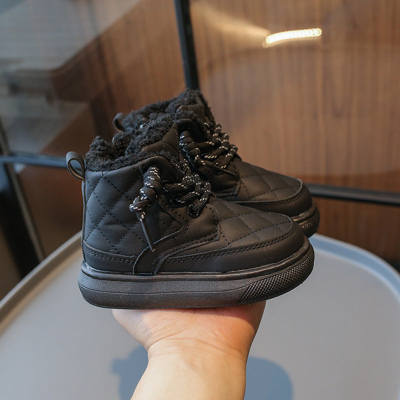Kids’ Leather Snow Boots – Warm Velvet Winter Shoes