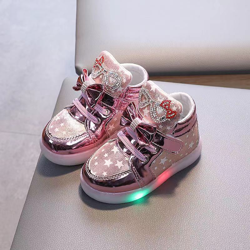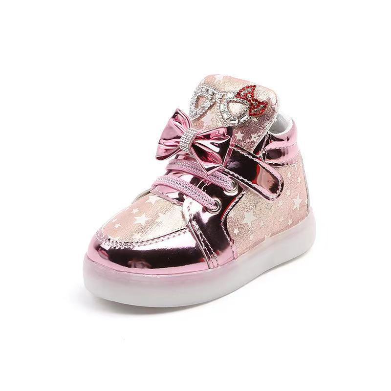 Girls’ Light-Up Boots LED Leather Shoes with Bow
