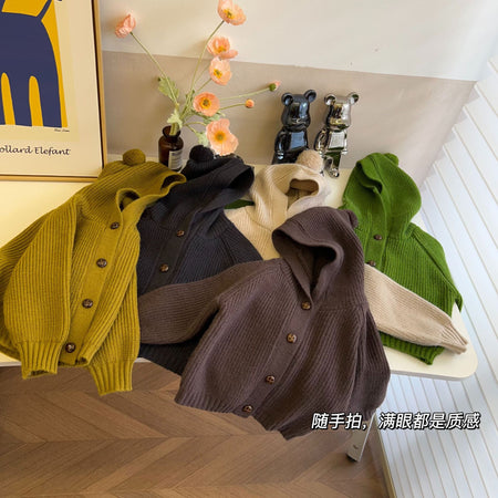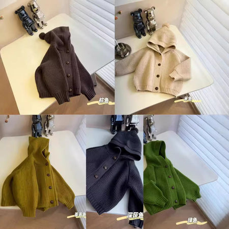 Kids’ Hooded Knit Cardigan – Autumn Baby Sweater Jacket