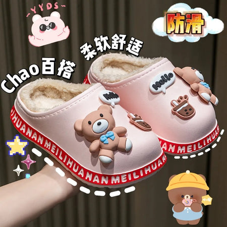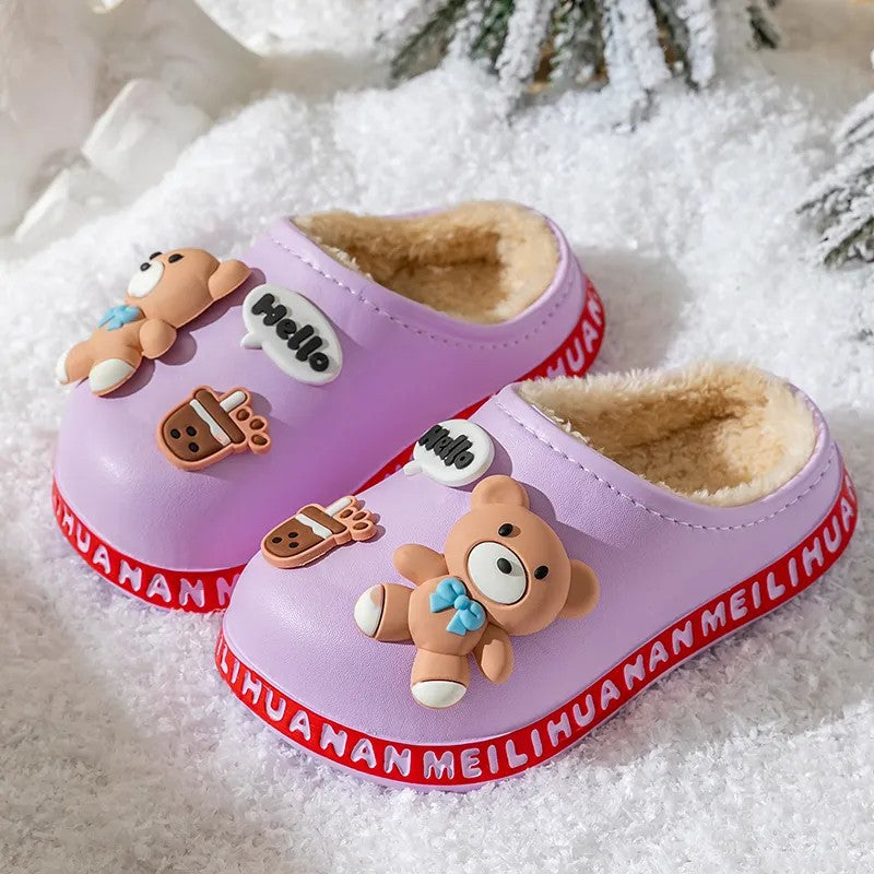 Kids’ Warm Cotton Slippers – Fleece Lined Indoor Shoes