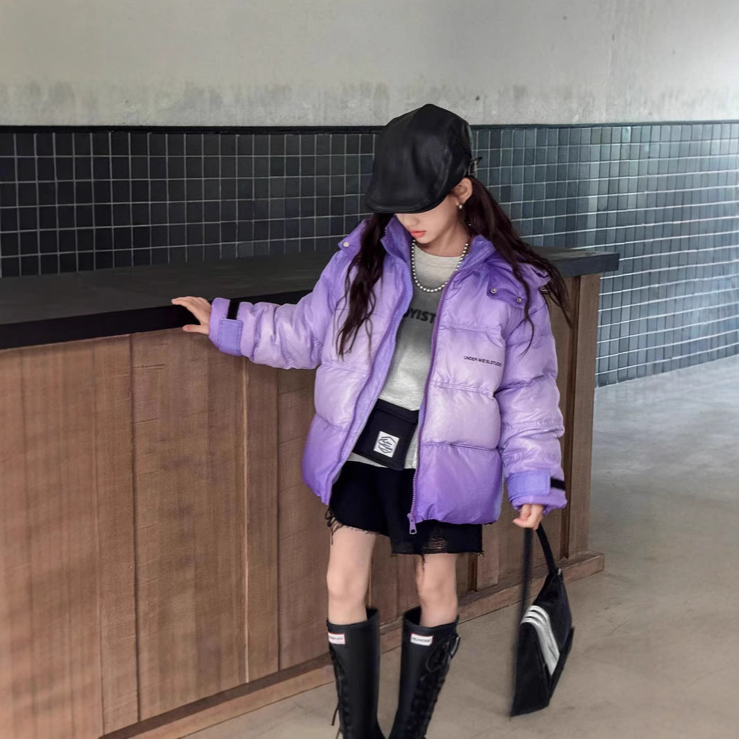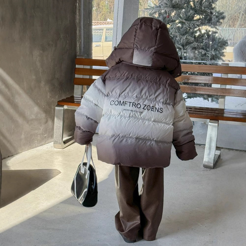 This kids down suit is ideal for snowy days, outdoor photoshoots, and festive occasions. Parents appreciate the combination of warmth, style, and durability.