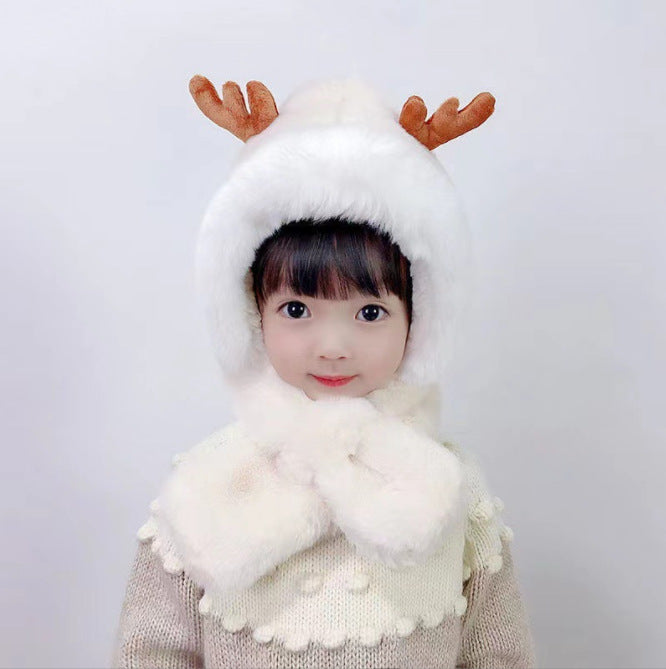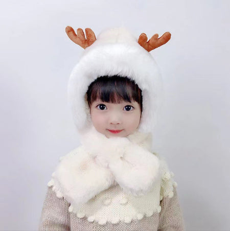 Kids Warm Hat & Scarf Set with Plush Deer Antlers