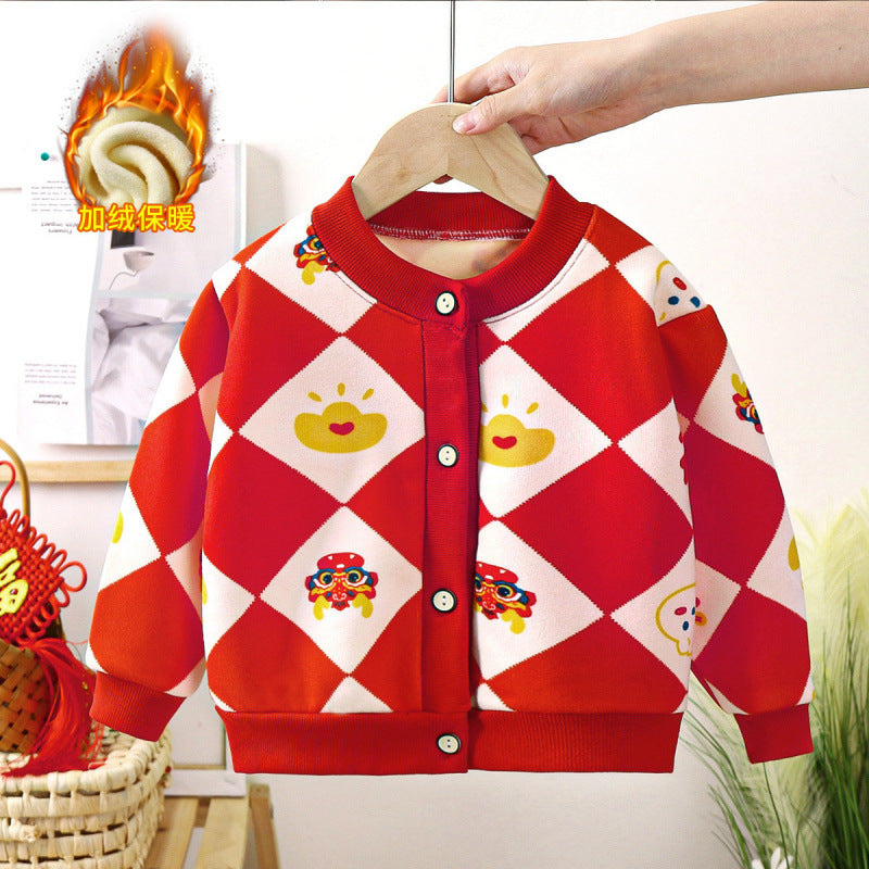 Kids’ Thickened Knitted Sweater Cardigan Autumn Winter