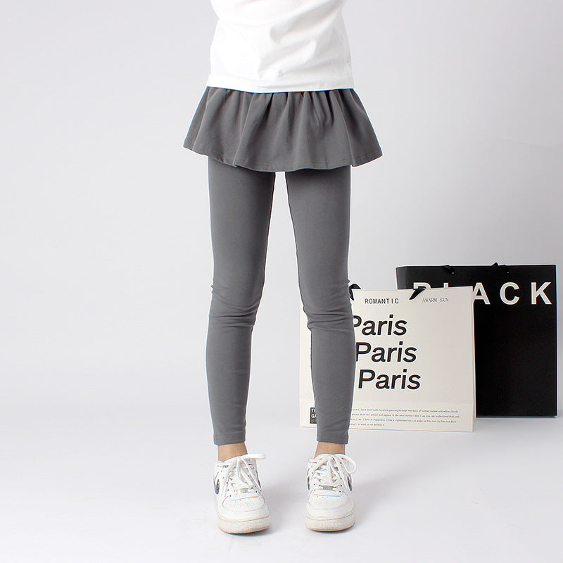 Girls’ Solid Color Culottes – Autumn Korean-Style Leggings