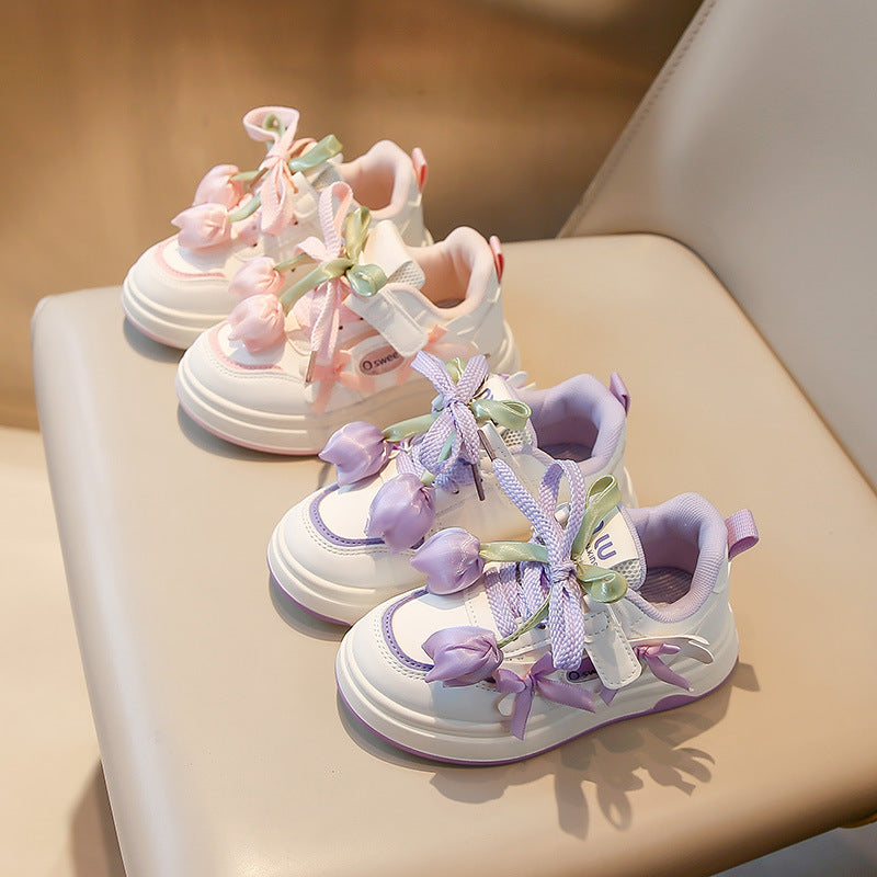 Featuring a cute flower design, these shoes are playful, trendy, and versatile, pairing easily with casual outfits, dresses, or sporty wear. The easy-to-wear design makes them ideal for children who want stylish footwear without compromising practicality.