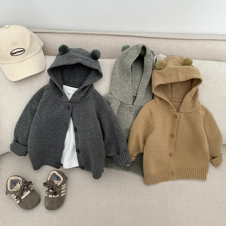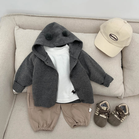 Kids’ Hooded Knit Cardigan – Cute Korean Style Autumn Jacket