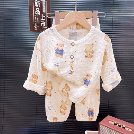 Kids Summer Cotton Pajama Set β Double-Layer Muslin, Class A Safety