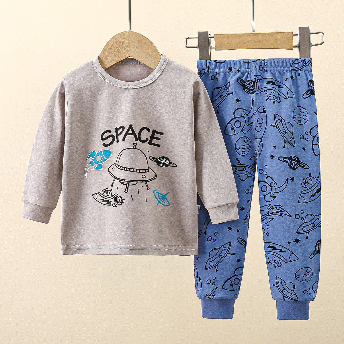 Crafted from 100% pure cotton, it is breathable, gentle on delicate skin, and ensures all-day comfort. The set includes a long-sleeve top and matching bottoms, providing warmth without overheating, making it perfect for lounging at home, sleeping, or casual indoor play.