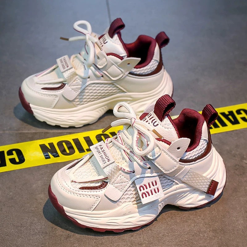 These sneakers are a wardrobe essential for every girl this spring. The breathable mesh keeps feet cool, while the soft sole ensures comfort whether she’s at school, at the park, or playing sports. Their versatile white design makes them easy to pair with any outfit—casual or sporty.