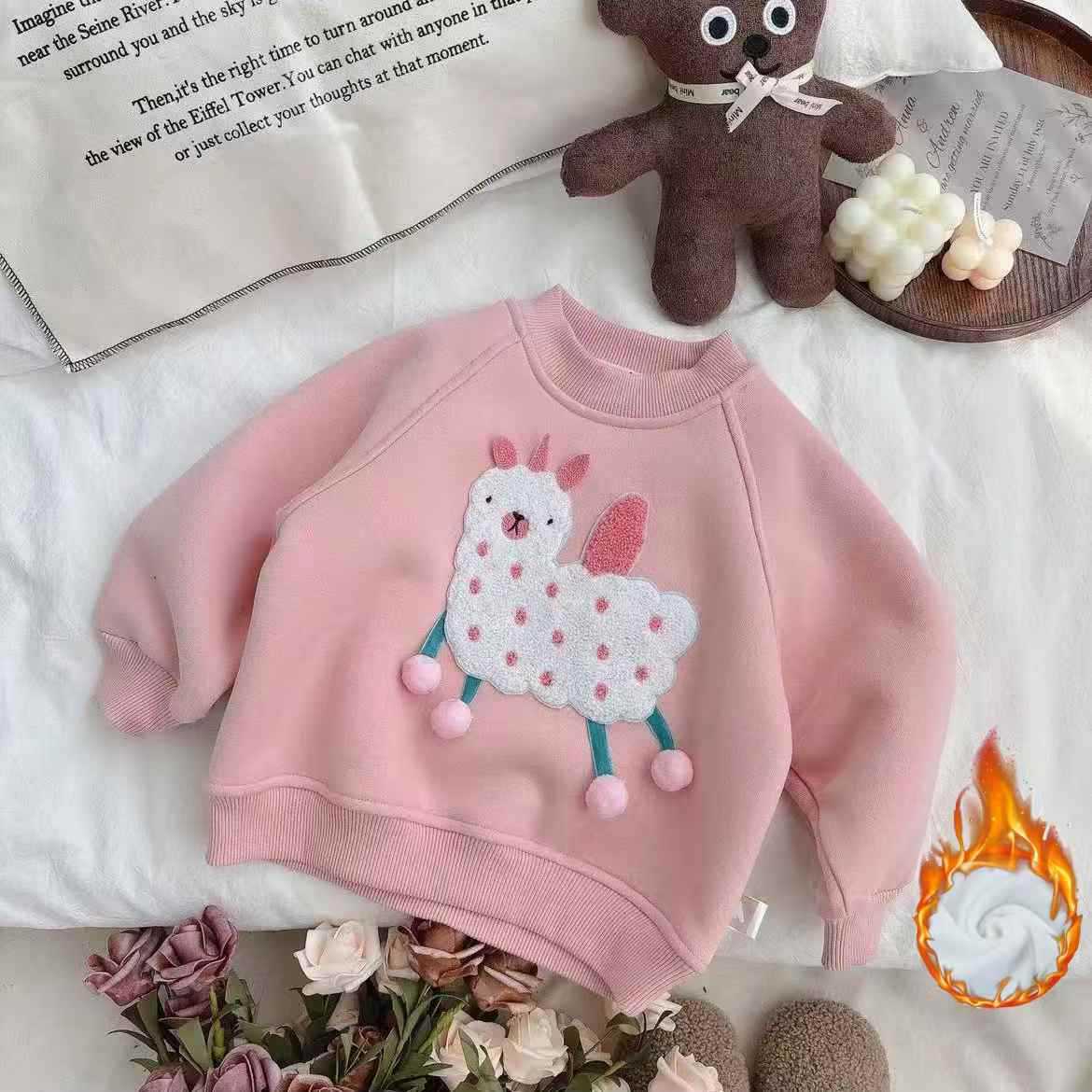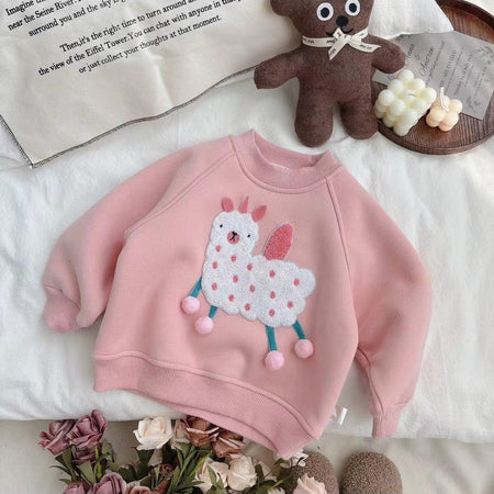 Girls’ Velvet Cartoon Sweatshirt – Winter Warm Top