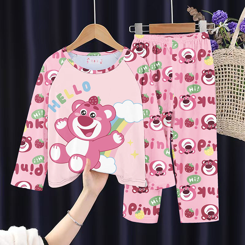 Cartoon Strawberry Bear Pajama Set Kids Home Wear