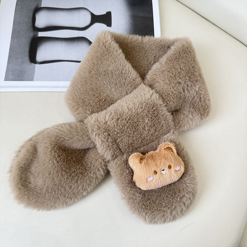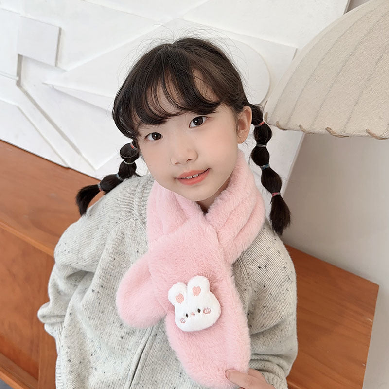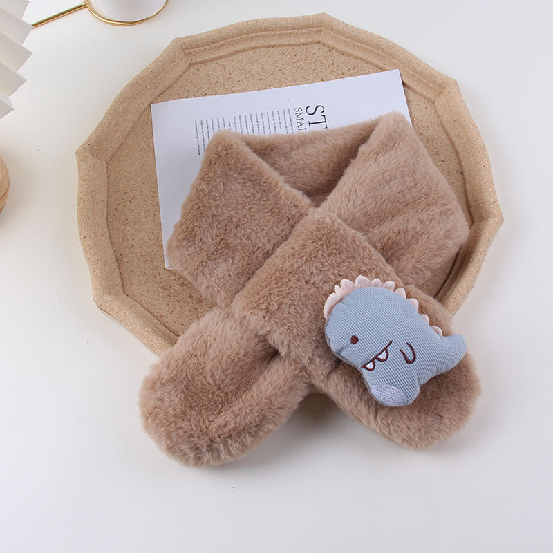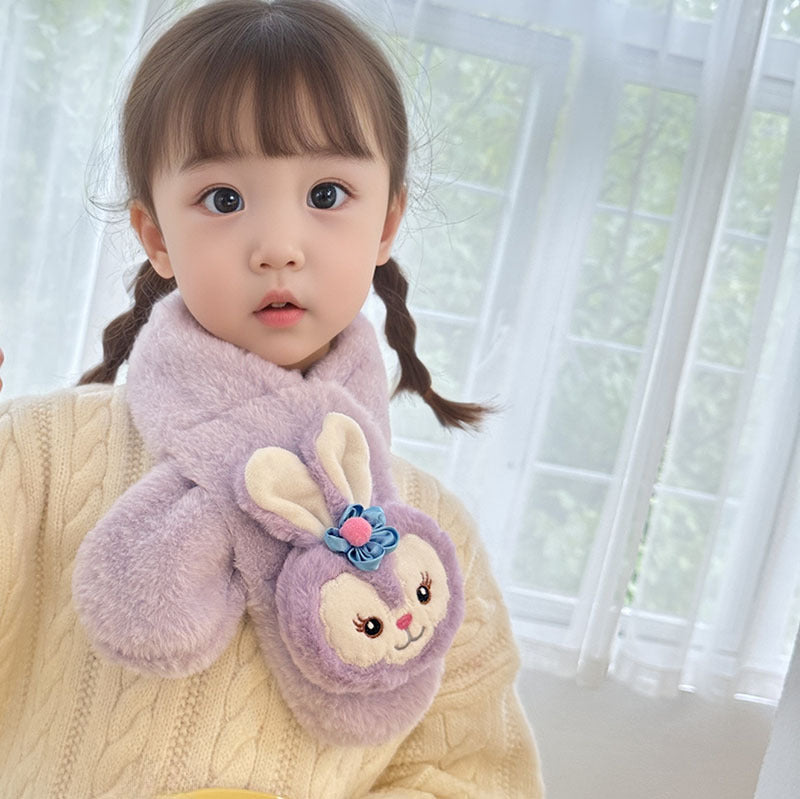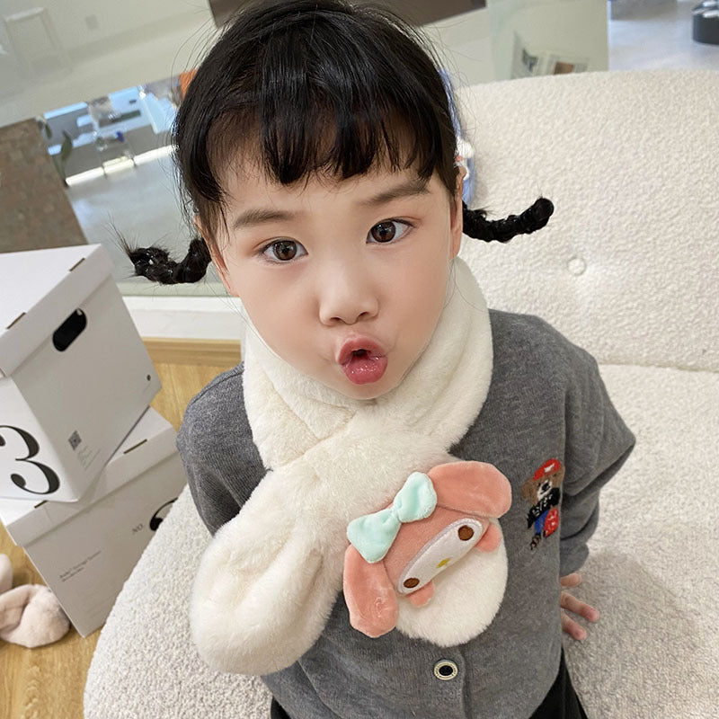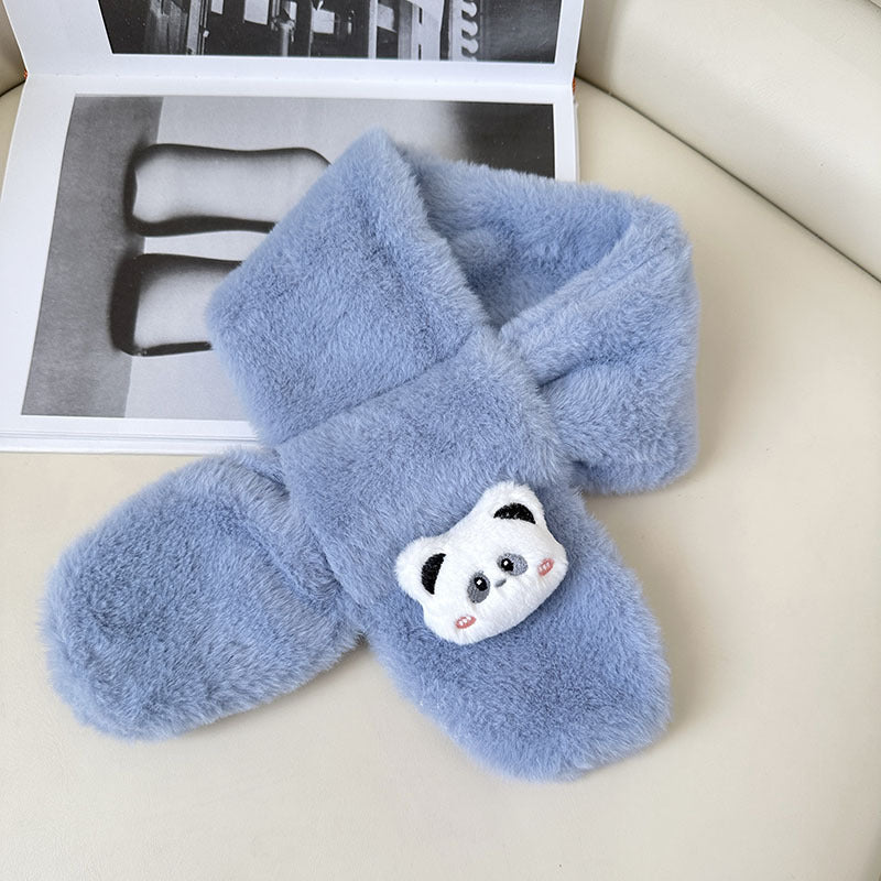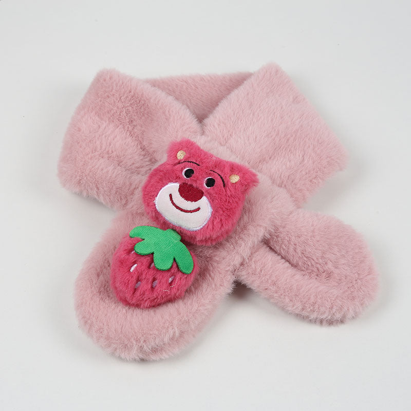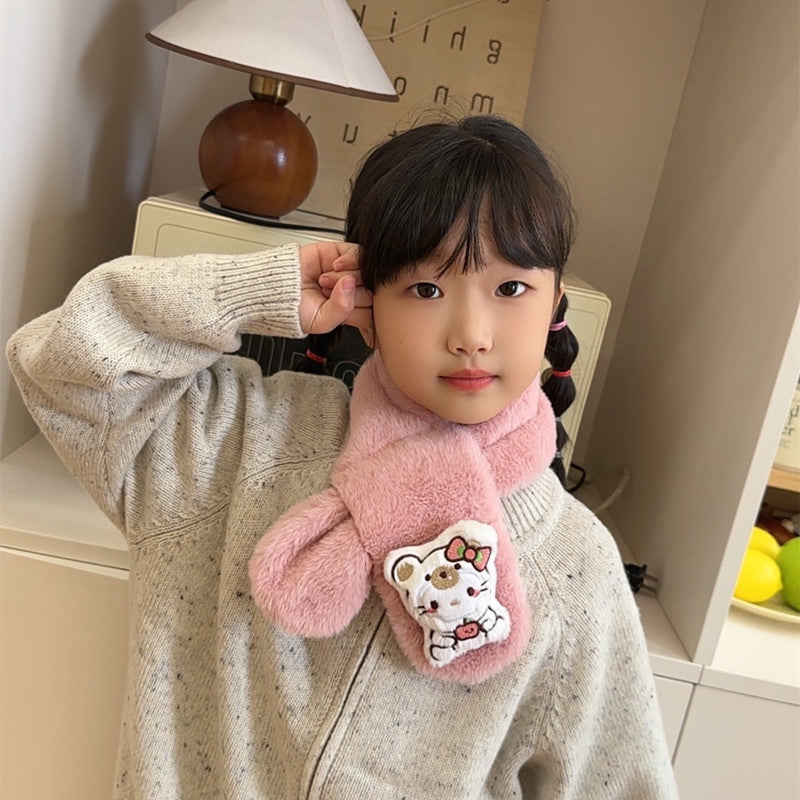 Cartoon Plush Kids’ Scarf – Warm Cross Neck Protector