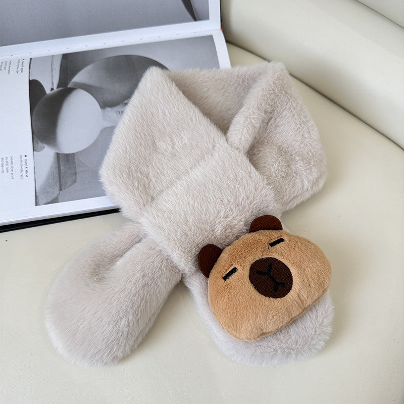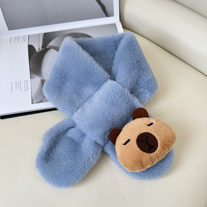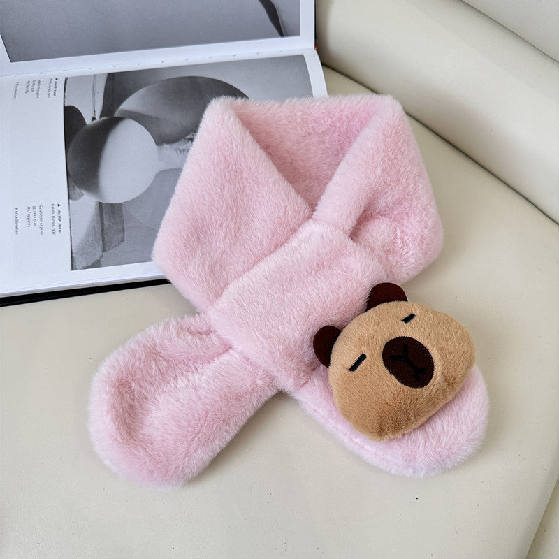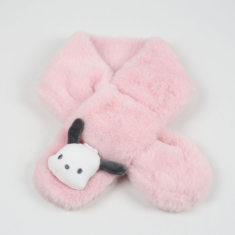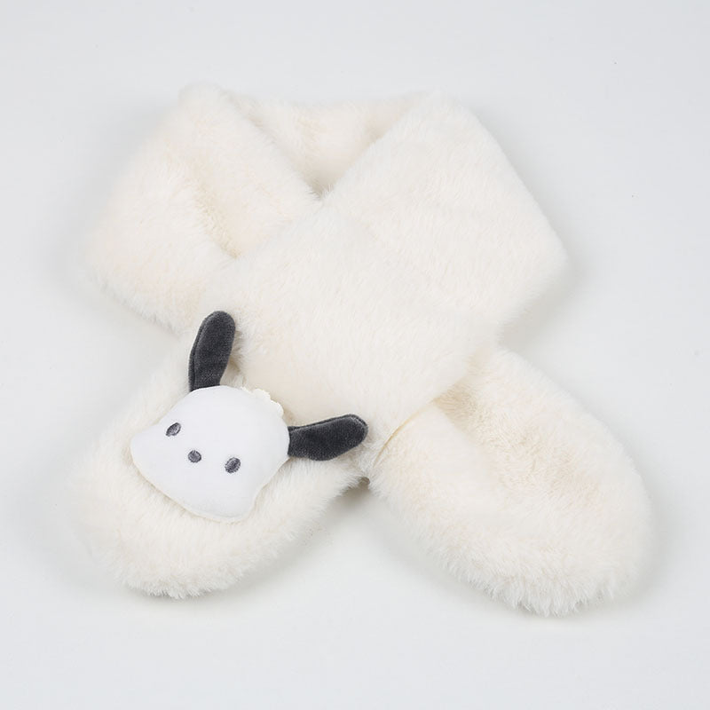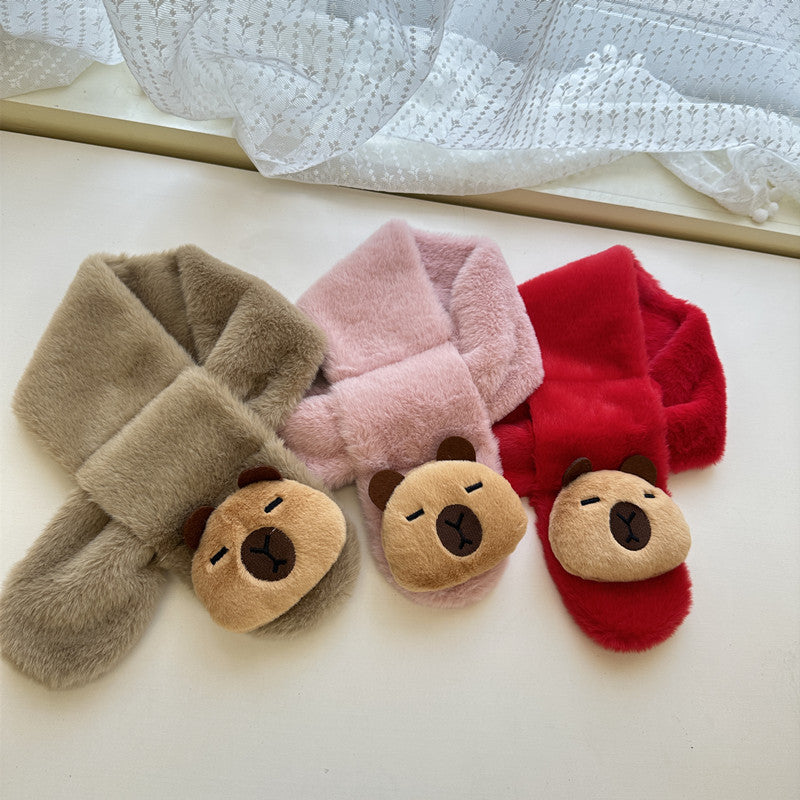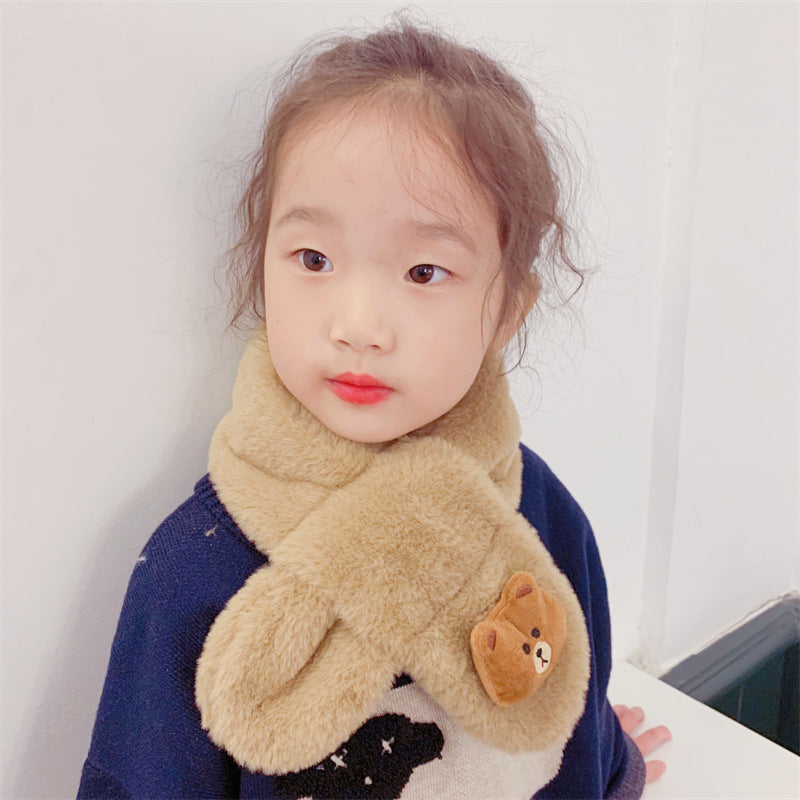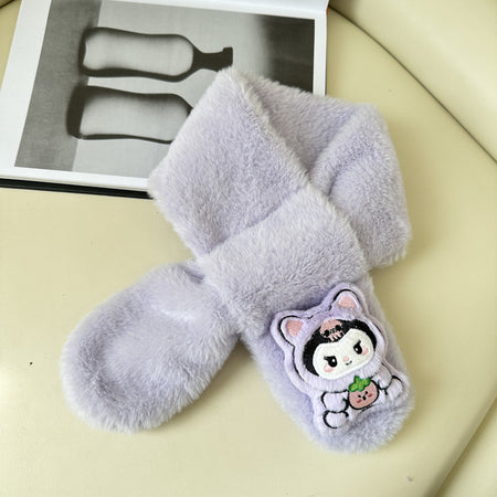 Cartoon Plush Kids’ Scarf – Warm Cross Neck Protector