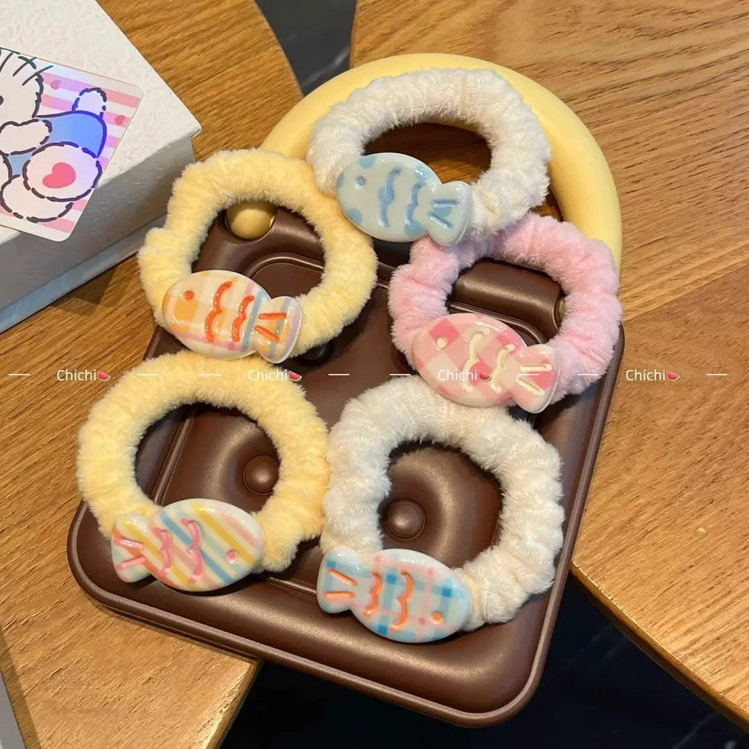 Add a splash of cuteness to your hairstyle with this adorable fish plush hair band 🐟💖! Designed for girls and women, it’s made with soft plush fabric and a high-elastic band that holds your ponytail perfectly—without pulling or tangling!