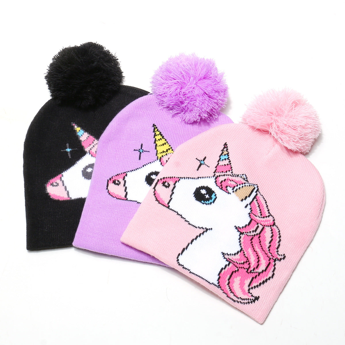 Cute Unicorn Cartoon Wool Hat – Children’s Winter Knitted Beanie