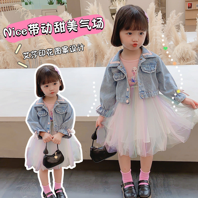 Elsa Girls' Denim Skirt Set | 2024 Spring Outfit