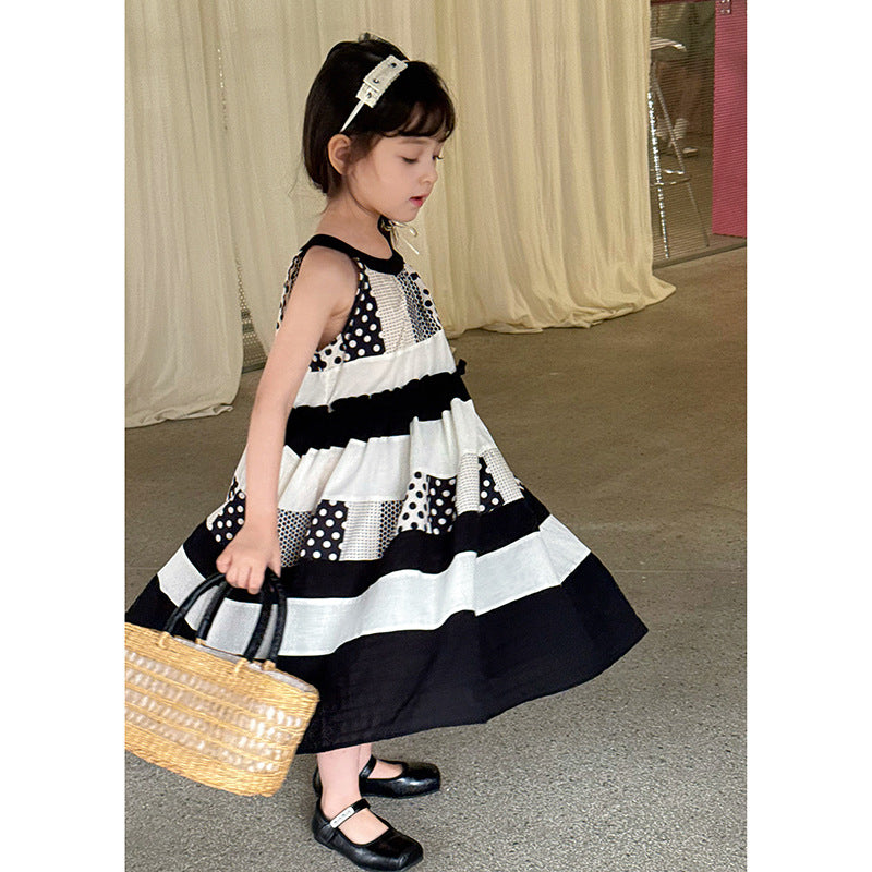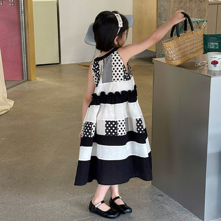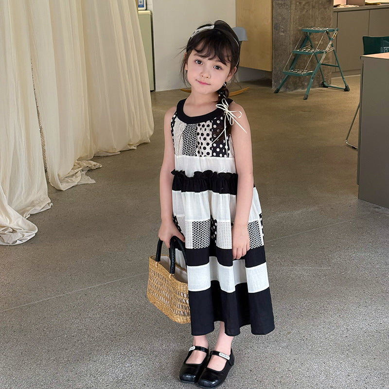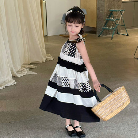 Introduce timeless charm with our Girls’ Lace Dot Summer Dress 2025, inspired by the classic Hepburn style. Perfect for little girls who love elegance, this dress combines lace detailing with a playful neck-hanging design. 🎀👑