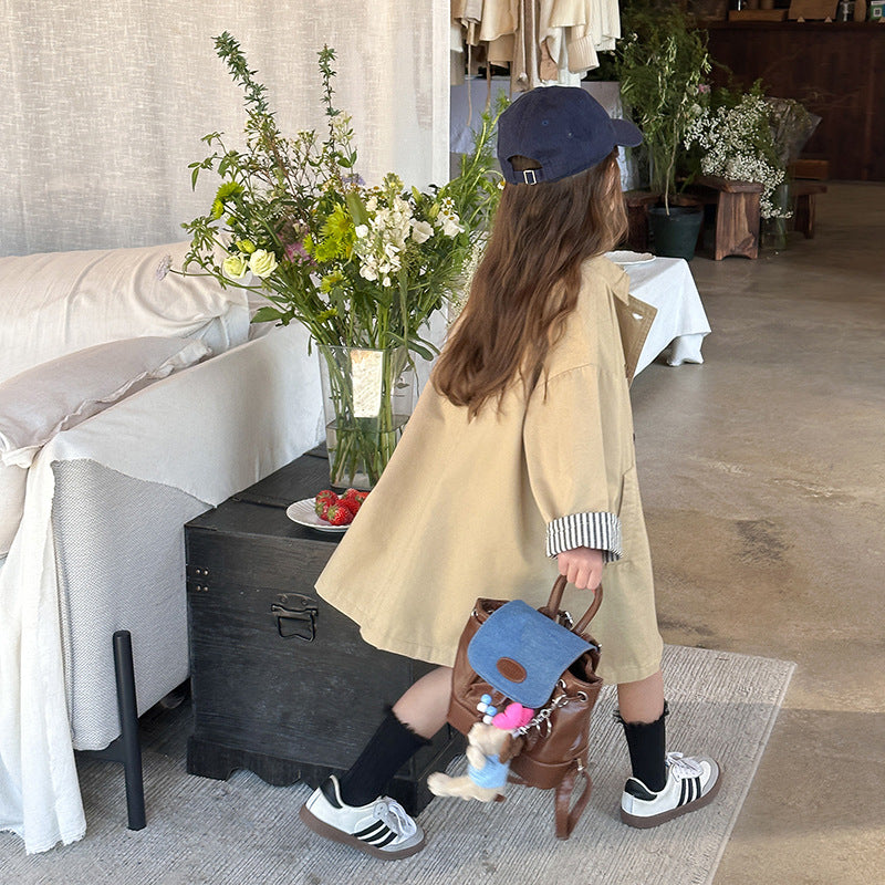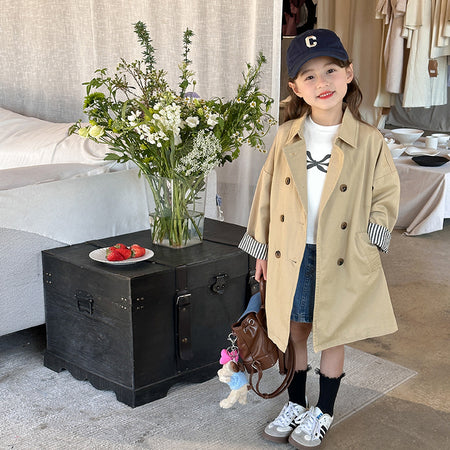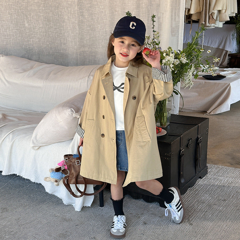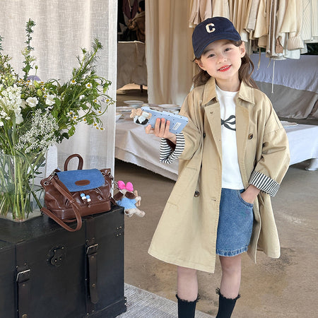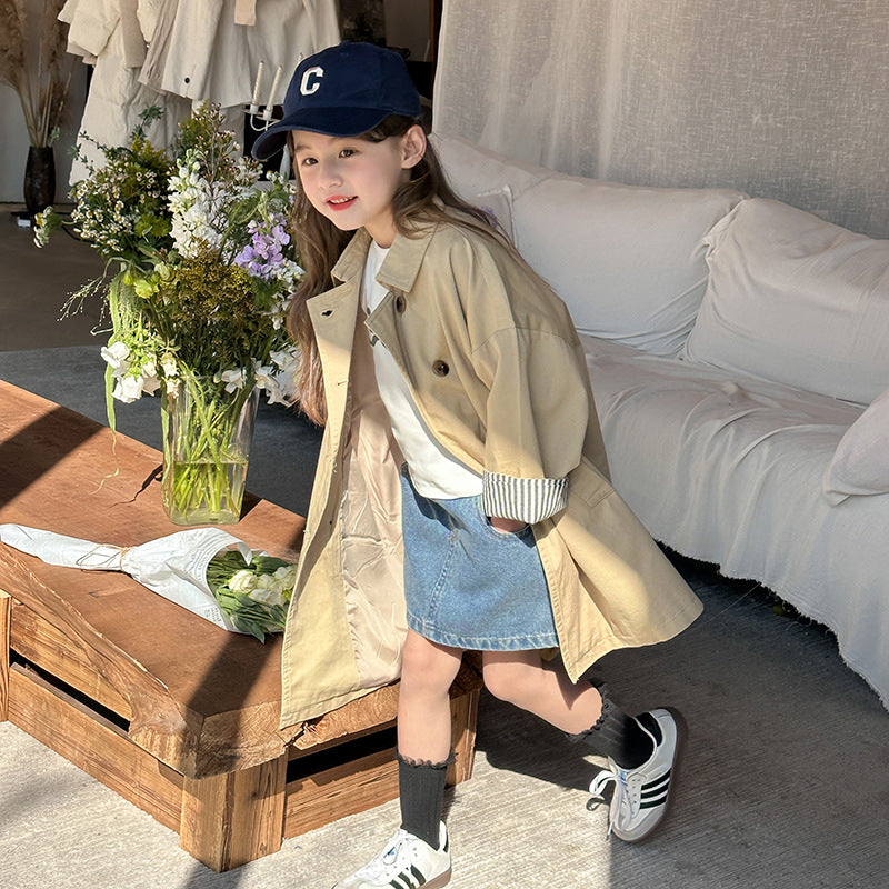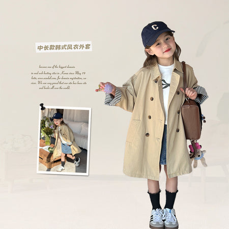 Emo Beibei Girls’ Spring British-Style Mid-Length Coat