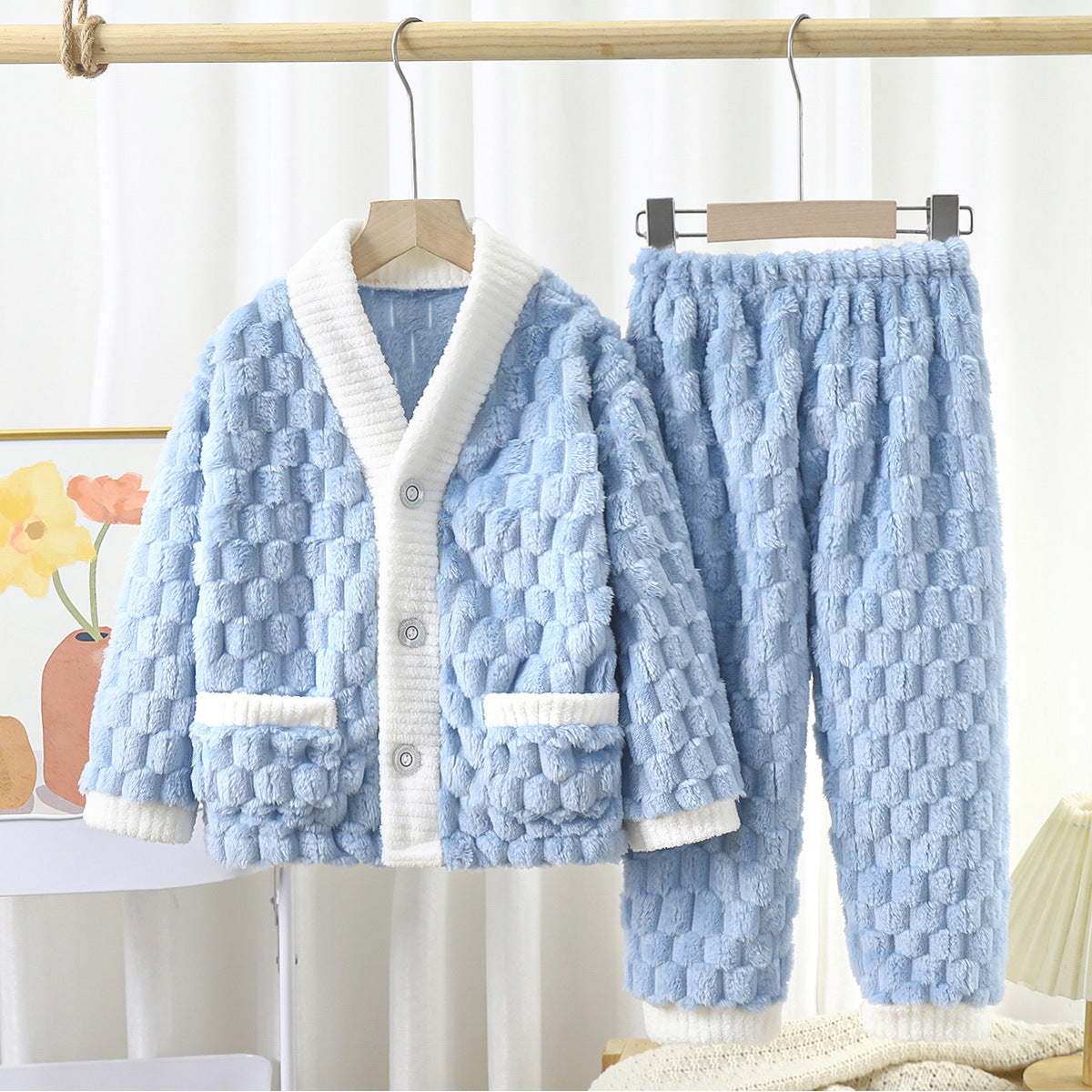 This set is perfect for homewear, sleep, or lounging, and its durable fabric ensures it can withstand everyday use. The cozy material, combined with the functional flap pockets, makes it both comfortable and practical for active kids.