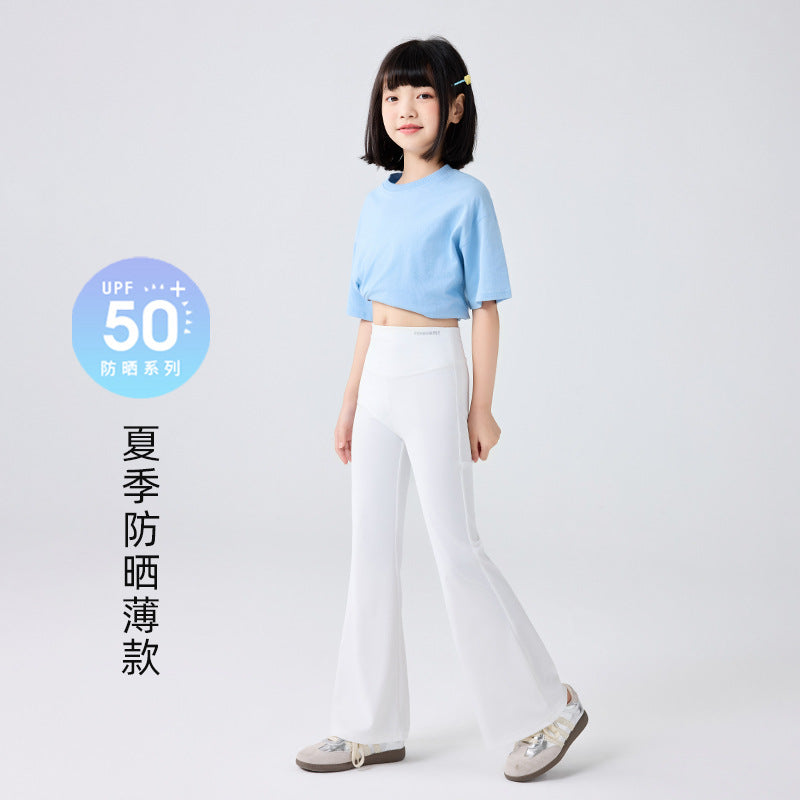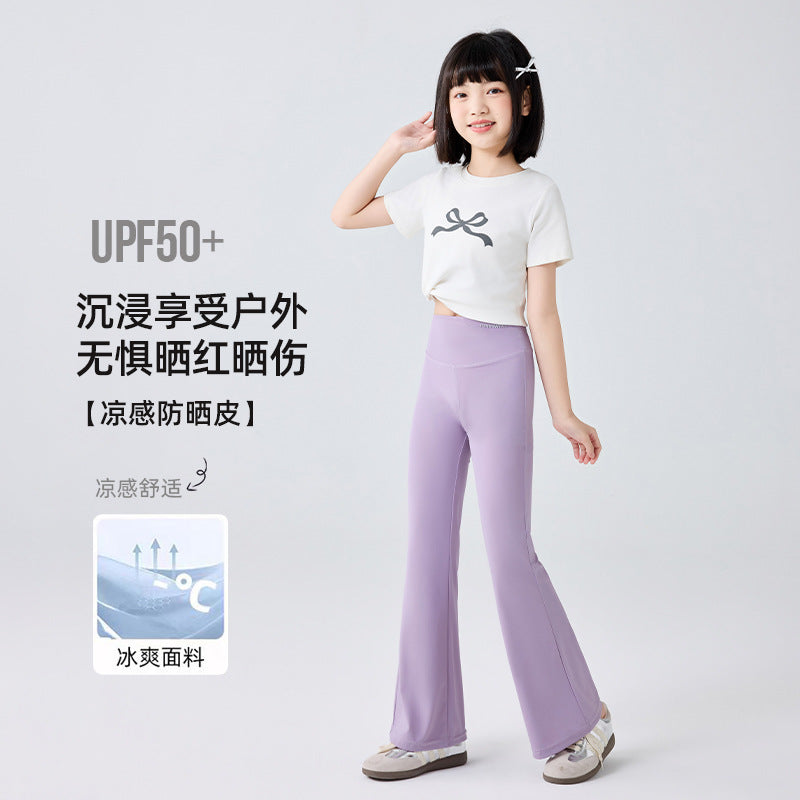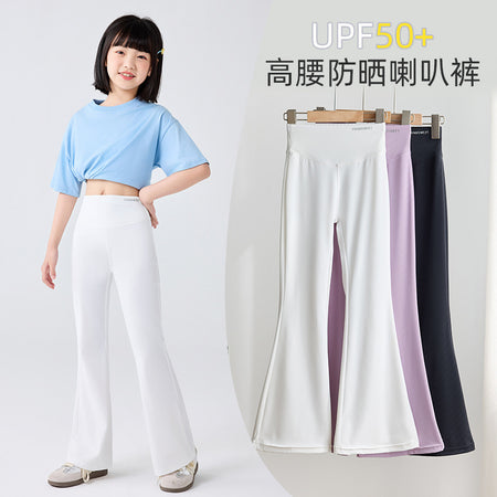 Girls’ Ice Silk Flared Pants – Summer High Waist Sunscreen Leggings