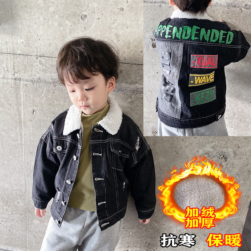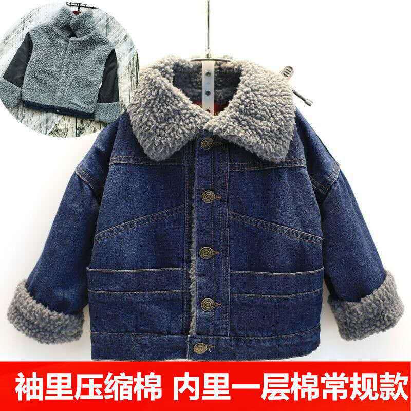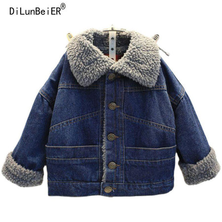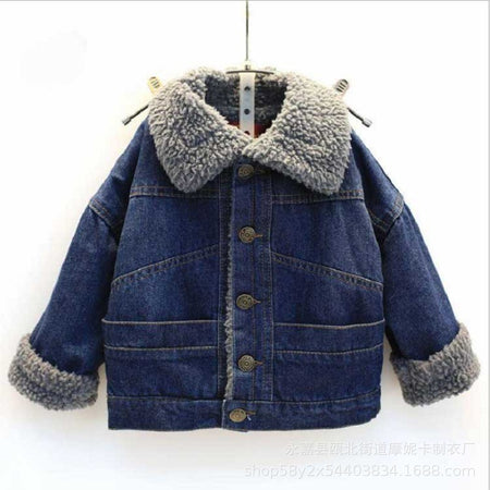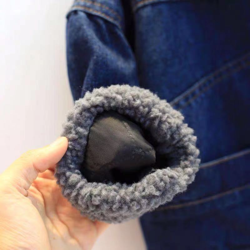 Stay cozy this winter with this fleece-lined thickened denim coat, designed for boys and girls. With its lambskin interior, this jacket provides extra warmth while keeping your child stylish. ❄️